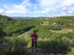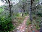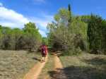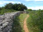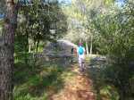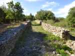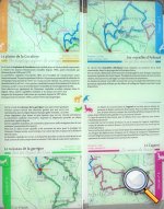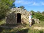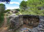 La randonnée peut débuter par n'importe quel circuit à condition d'avoir la carte en main car les chemins, pistes et sentiers se croisent souvent. Sans la carte, s'assurer que l'on suit toujours la même couleur peinte sur des poteaux en bois. Il est impossible de se perdre mais on peut passer sans le vouloir deux fois au même endroit. La piste qui mène au point de départ officiel est accessible aux véhicules mais il est possible de se garer près de la route pour marcher un peu plus. La piste en terre est large, en légère pente bordée de pins ou garrigue (Photo 1). Avant de parvenir au parking, on remarque déjà des capitelles dans les clairières et l'on est surpris par la bonne odeur de la salsepareille qui embaume la campagne (Photo 2). La région, assez aride, est couverte de conifères dont de superbes jeunes cèdres du Liban (Photo 3). Un grand carrefour près du parking représente le départ des quatre circuits. De grands panneaux renseignent sur le lieu et les circuits. Il est bon de les lire avant le départ pour mieux comprendre tout ce qu'il y a à découvrir (Photo 4). Partir à l'ouest puis entamer la première boucle en débutant par une large piste sous les pins (Photo 5). On parvient très vite à la première construction qui est l'une des plus grandes de la journée. Plus loin, en suivant le balisage, on rencontrera régulièrement d'autres capitelles toujours faciles à dénicher (Photo 6). Le circuit quitte la piste pour emprunter des sentiers avant de retrouver d'autres pistes où l'on rencontre un puits ou des vestiges de drailles, ces pistes bordées de murets de pierres sèches permettant de déplacer les troupeaux sans empiéter sur les vignes (Photo 7). Chaque cabane en pierre est reliée par un sentier familial très souvent plat à travers les sous-bois de pins et garrigue (Photo 8). Comme la fiche prévoit d'effectuer le trajet le plus long possible sans passer au même endroit, il est inutile de revenir au parking ; suivre pistes et sentiers vers le circuit des Murailles d'Aribaud, quitte à ne pas voir les trois dernières capitelles. En arrivant sur le circuit bleu, suivre les balises de la même couleur et recommencer la recherche des maisonnettes qui comportent toujours la porte au sud, n'ont pas de fenêtres et sont même parfois accolées à des abris pour les animaux (Photo 9). L'une d'entre elles abritait un âne qui aidait dans les travaux de la vigne. Poursuivre la balade dans un paysage assez verdoyant malgré la région sèche (Photo 10). Il est possible de pénétrer dans chaque capitelle pour en observer l'architecture, en apprécier la fraîcheur ou étudier la pierre sommitale, pièce importante pour la pluie (Photo 11). La recherche se poursuit avec toujours un nouvel ouvrage à chaque changement de sentier. Certaines capitelles sont très importantes en surface construite (Photo 13). On longe de nouvelles drailles dans les kékés de la garrigue (Photo 14). A première vue, les abris se ressemblent tous. Pourtant, ils ont tous une légère différence, qu'ils soient arrondis (Photo 15), jumeaux (Photo 16) ou entourés de murets (Photo 17). Quitter le circuit pour entamer d'autres découvertes par le circuit rouge qui emprunte quelques portions de piste (Photo 18). Les panneaux ou numéros sont rares mais on en trouve qui sont bien indiquées (Photo 20). En arrivant au point le plus à l'est de la boucle, on arrive à la vallée du Rieu Sec qu'on devine au fond de la vallée (Photo 21). Une petite route empruntée par les cyclistes passe dans le fond. L'endroit est charmant et peut donner lieu à d'autres randonnées dans la région. Trouver le sentier qui suit la courbe de niveau en direction du point de vue indiqué sur la carte (Photo 22). Du point de vue, le regard porte sur la campagne environnante, encore le Rieu Sec, des vignes, des cultures ou des prairies (Photo 23). De nombreuses pistes et sentiers partent dans tous les sens pour revenir vers le point de départ. Continuer en cherchant de nouvelles cabanes ou en passant près de la plus belle draille de la boucle (Photo 24). Plus loin, en arrivant près de l'aire de pique-nique, partir sur la gauche, suivre une partie de la dernière boucle qui traverse à mi-parcours le Ruisseau de la Garrigue juste avant de parvenir à la piste qu'on a remontée jusqu'au point de départ officiel. Le terrain est toujours aussi plat ou odorant à l'automne (Photo 26). On retrouve bien évidemment d'autres capitelles, toutes aussi bien entretenues les unes (Photo 27) que les autres (Photo 28). Un écart par un sentier se dirigeant vers le Ruisseau de la Combe de Villeraze permet de découvrir les trois dernières capitelles avant de revenir vers le parking. En suivant le circuit proposé, on est certain de voir quarante cabanes. D'autres, en ruine dans les fourrés, seront certainement remises en état par l'association qu'on remercie au passage pour les milliers d'heures employées à ce travail de titan. Les randonneurs qui ne sont pas attirés par ce style d'architecture rurale peuvent tout de même parcourir le lieu en footing facile sur terrain presque plat et boisé.