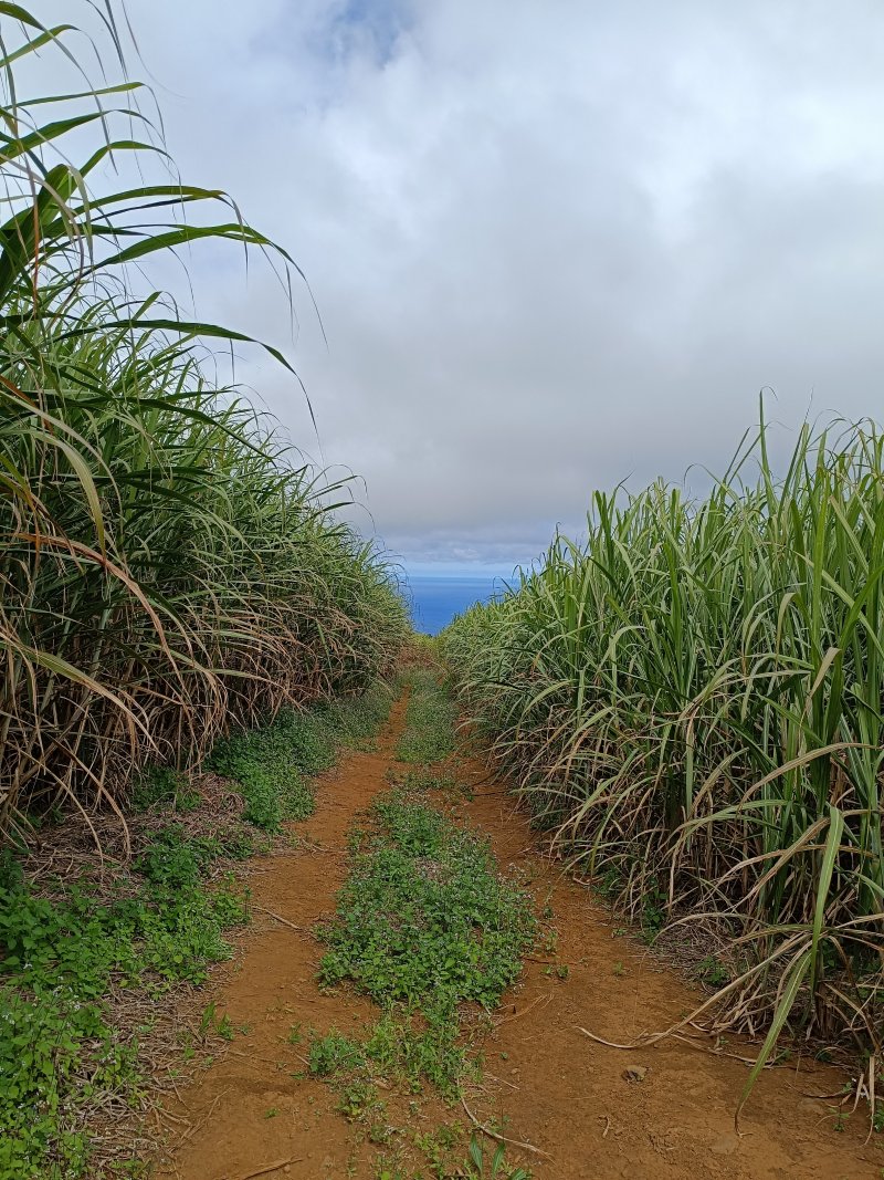 C'est toujours une boucle simple et peu exigeante, mais vraiment agréable avec ses vues régulières sur le Piton de Mont Vert et les champs de cannes se découpant sur l'océan. Le clou de la sortie, à mon avis, est le (trop) bref passage dans la "forêt " d'eucalyptus. C'est vraiment beau !