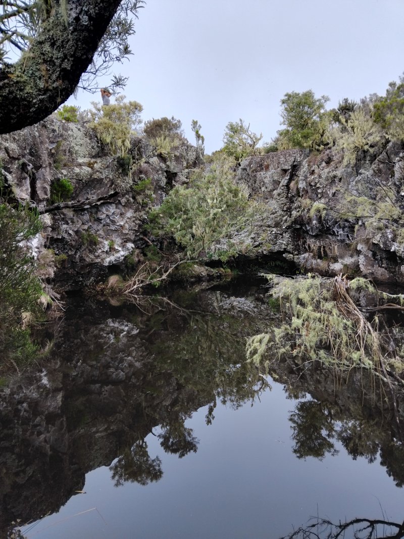 Très belle boucle en 8 réalisée le 13 décembre 2025 guidé à nouveau par oremus et accompagnée de gazelle .après avoir traversé la tamarineraie place à une végétation altimontaine ericoide hélas envahi par l’ajonc d’europe tres piquant. Cela n’enleve toutefois pas le charme et la beauté de la ravine la source creusé en canyon dans les breches cimenté parfois profond et spectaculaire où les grottes cassés et bassins sont magnifiques. Nous avons pu descendre plusieurs fois pour les découvrir dans leur ecrin de verdure, de mahot et de tamarins. Nous sommes allés au pied du pilon bernica voir l’impressionante falaise basaltique et à ma grande surprise de voir que des petits tamarins des hauts ont pu coloniser cette endroit. Habituellement ils sont sur le massif de la fournaise. Nous avons poursuivi vers l’observatoire la piste dfci et continuer la trace avec un peu de hors sentiers pourr redescendre et terminer sur la route. Le temps etait parfois brumeux se qui donnait une atmosphère particulière et mystérieuse bien prendre le temps pour découvrir découvrir un pléthore de curiosités.