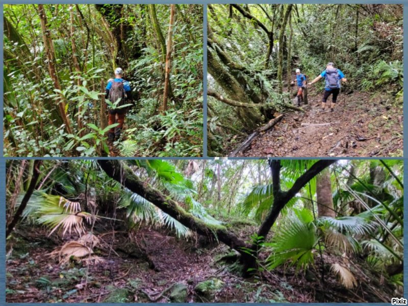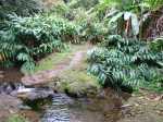 Le rempart atteint, c'est alors un superbe sentier bien entretenu qui va nous conduire en aval du bassin des Aigrettes avec de hautes et vertes fougères, une forêt plus classique de goyaviers ou de jamrosats et de grandioses pieds de palmistes. Les traces préparées par nos guides, Jean-Paul et Martial ne sont donc plus valables mais c'est le propre de l'inédit et nous ne le regrettons pas.