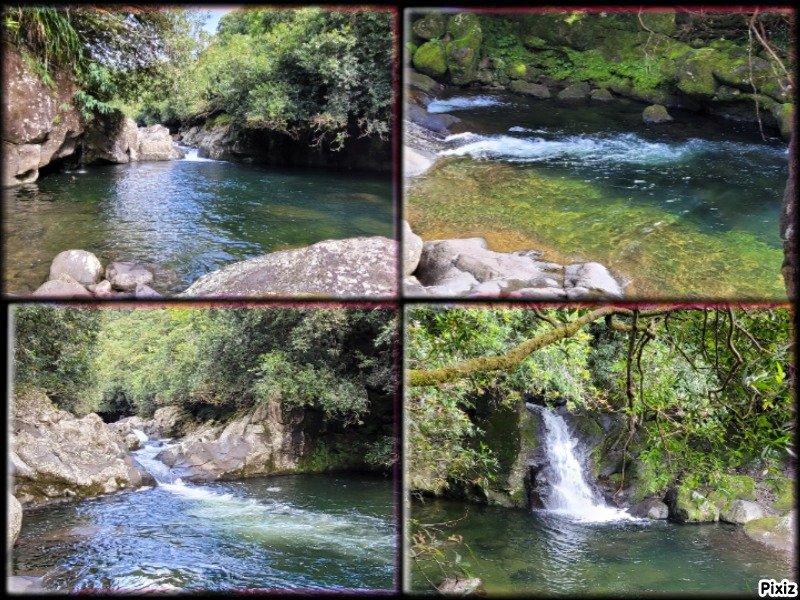 Le sentier de bordure du Bras des Lianes, pourtant ponctué de rubalises visibles, n'en reste pas moins difficile par moments, mais il est vraiment plaisant, ajouré de remarquables et profonds bassins d'eau claire, de berges moussues (et glissantes !)., de mignonnes petites chutes (photo 3).