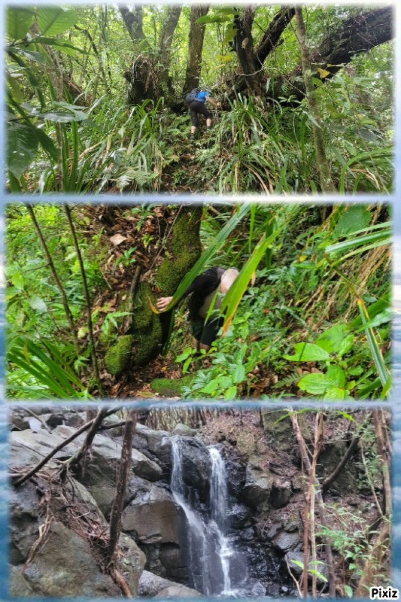 Nous arrivons au niveau de la cascade; nous en profitons pour un rapide pique-nique largement mérité. Je déniche le sentier des canyonneurs bien caché dans cet enfer vert. Nous savons alors que nous n'aurons pas à faire le chemin à l'envers et que la victoire est au bout du rempart.