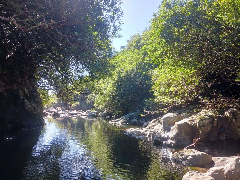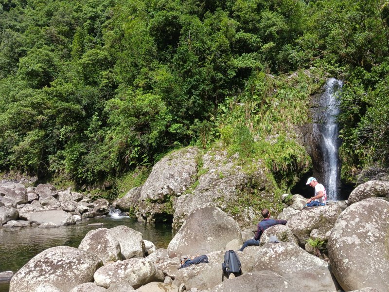 Bonjour. Tres belle randonnée faite ce jour par un beau soleil en compagnie d'Oremus et Michel en 6h30 pauses comprises. Nous avons suivi la trace et les sentiers sans incident jusqu'au bras des Lianes. Le sentier en rive droite se suit aisément jusqu'au point 280, si on fait un minimum attention. Mieux vaut ensuite rejoindre les berges. La remontée de la rivière a ensuite été facilitée par des rochers plutôt secs.