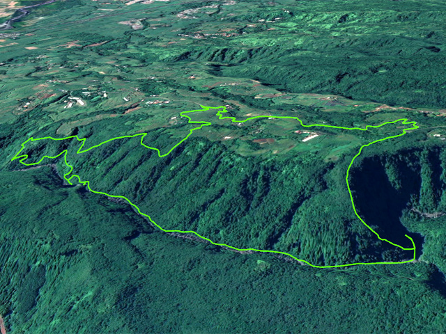 Je redis ici le souci permanent que j'ai de ne pas empiéter sur une propriété privée lors de la réalisation d'un parcours. En effet, fils de paysan, j'ai passé de nombreux moments de ma jeunesse à récupérer des bêtes enfuies par les barrières laissées ouvertes par les randonneurs, chasseurs, pêcheurs ou cueilleurs et je suis sensible aux inconvénients que cela peut engendrer pour un propriétaire. Je précise aussi que je supprime, modifie, me renseigne ou vérifie sur place chaque fois qu'on me dit avoir été surpris sur un terrain privé. La plupart du temps, il s'agit d'une erreur d'orientation du randonneur. Mis à l'échelle des cartes, le trait rouge représentant la trace correspond à plus de 20 mètres sur le terrain. Il est facile de marcher sur un terrain privé à moins de 20 m du tracé sans que le curseur de localisation ne s’affole. Il est donc important de lire les renseignements, même succincts, figurant sur la fiche au lieu de télécharger la trace, se précipiter sur le terrain et les lire au retour.