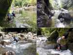 En effet, notre passage nous a montré un Bras des Lianes plutôt calme, au niveau d'eau "jouable"; et pourtant il présentait déjà de beaux bassins bien profonds bordés parfois de parois rocheuses verticales obligeant à trouver un gué (nous pouvons l'attester Martial et moi !); ce qui nous a laissé songeurs quant à la puissance de ce cours d'eau en cas de crue !