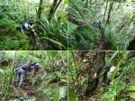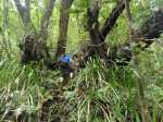 Un discret sentier en rive droite nous fait du bien mais nous le perdons assez vite et là nous bataillons dans les fougères et une forêt plutôt hostile dans une pente elle aussi pas bien agréable. Par-ci, par là 2 ou 3 bouts de vieilles rubalises qui nous rassurent un peu lorsque nous décidons de retrouver le lit de la rivière et ô nouvelle bonne surprise, encore une rubalise.