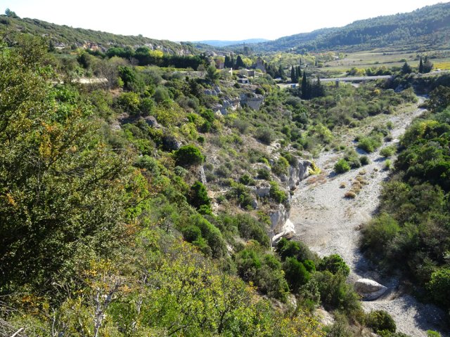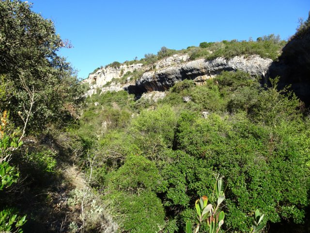 La randonnée débute au parking situé près du pont enjambant La Cesse pour rallier le hameau de Mayranne. Pour raccourcir la boucle, il est possible de traverser le pont puis de remonter directement à Mayranne. Sinon, partir à gauche sur la piste réservée aux motards. Franchir le gué proche du lieu d'entrainement et remonter par la petite route jusqu'au hameau de Mayranne (Photo 2). Traverser vignes, friches et premières garrigues puis délaisser le chemin menant à Minerve. Traverser le hameau paisible de Mayranne et ne pas manquer la piste partant sur la droite avant les croisements. Descendre par quelques lacets pour franchir le Ruisseau de Goury et remonter en direction du Causse de Coupiat. Délaisser le sentier débutant au cairn en direction de la passerelle enjambant le Ruisseau de Coupiat. Entamer alors la longue et facile montée sur piste à travers les garrigues (Photo 3). Plus on monte et plus les fouilles de sangliers se multiplient, confirmées par les postes d'observation des chasseurs. Le sol en terre est remplacé peu à peu par des petits cailloux de calcaire imposant de regarder où mettre les pieds (Photo 4). Le vide, sur la droite, attire le regard. On peut fréquemment s'approcher de cette rive droite du Ruisseau de Coupiat ou de ses affluents en traversant les thyms et chênes verts pour admirer les premières falaises (Photo 5). Le large chemin caillouteux poursuit sa montée jusqu'au croisement à 463 m. On bénéficie de superbes panoramas sur les Corbières, les Pyrénées avec le Canigou dépassant des nuages. La large piste DFCI file plein nord à travers les chênes verts (Photo 6). Quitter également cette large piste pour partir sur la droite vers le lieu dit Contadis. La nouvelle piste est plus étroite et couverte d'herbe verte. On traverse plus loin quelques prairies au point culminant de la boucle (Photo 7). Entamer une descente en bénéficiant de quelques vues sur la D907. La piste se transforme en large sentier qui se rétrécit progressivement sans jamais disparaître (Photo 8). La balade devient très agréable en sous-bois ombragé longeant la route en profitant des larges panoramas sur les environs. Repérer dans la descente, au croisement, le chemin partant sur la droite vers le point de vue sur le Ruisseau de Coupiat. Des panneaux interdisent les tirs sur les perdrix rouges et l'on parvient très rapidement en haut des falaises dominant le ruisseau. On devine les falaises vers l'aval qu'on dominera en parvenant aux premières vignes (Photo 10). Faire demi-tour, rejoindre le croisement puis repartir en descente vers la droite en longeant une longue clôture électrifiée. On comprend très vite la fonction de la clôture aux premières odeurs caprines puis à la rencontre du troupeau (Photo 11). Si l'on n'est pas allé au point de vue pour raccourcir la distance et le temps, ce n'est pas important puisque la piste se rapproche très rapidement des falaises aperçues plus haut. Les premières vignes font leur apparition ; la piste sera même goudronnée sur une courte distance (Photo 12). Le circuit frôle alors le vide et il est possible de mieux voir la vallée par quelques pas dans la végétation. Le spectacle est toujours agréable vers l'amont où les falaises se rejoignent (Photo 13) ou vers l'aval qu'on rejoindra bientôt (Photo 14). Poursuivre le long de la gorge en traversant la Combe de Guiraud puis en franchissant un dernier ruisseau (Photo 15). La fin de la descente s'effectue sur une très agréable petite route bordée de murets de pierres sèches. On y longe de nouvelles vignes (Photo 16). La pente est faible, la marche rapide jusqu'aux abords du petit village de La Caunette qu'on devine en rive gauche de La Cesse (Photo 17). On peut, depuis la route, évaluer la difficulté de remontée de la rivière ou le niveau de l'eau. On parvient à La Caunette en passant au plus près de l'église du 12ème siècle (Photo 18). Ne pas quitter le circuit sans avoir fait le tour du village médiéval où il est possible de découvrir quelques vieilles pierres, des ruelles étroites ou escaliers massifs (Photo 19). Après cette visite qui se prolonge bien après l'école, prendre à droite et rejoindre le gué traversant La Cesse. Entamer la remontée de la rivière en direction du pont et de l'église qu'on aperçoit cette fois depuis le lit couvert de galets (Photo 20). La vallée est tantôt large, tantôt plus étroite et bordée de belles falaises de calcaire. La marche est assez aisée malgré les innombrables cailloux de toutes formes et de toutes couleurs (Photo 21). Il est recommandé d'effectuer une incursion le long du Ruisseau de Coupiat. On repère facilement son emplacement à la petite passerelle qui surplombe une partie du canyon (Photo 22). Le lit étroit présente de magnifiques bassins d'eau claire et fraîche (Photo 23). On trouve toujours un passage pour remonter l'étroit ruisseau. On rencontre une grotte obstruée par un mur et quelques tuyaux noirs longeant les falaises. La première centaine de mètres est ludique et riche en découvertes. La suite est plus difficile pour trouver le meilleur passage ou affronter la végétation (Photo 24). Les plus courageux poursuivront cependant jusqu'à quelques sentiers permettant de remonter dans les falaises. Faire demi-tour et rejoindre La Cesse pour terminer la boucle. Une fois dans le lit, repartir à droite, longer de nouvelles falaises de plus en plus hautes. Une nouvelle halte plus ludique est possible en grimpant dans la grotte repérée en rive gauche (Photo 25). Profiter des dernières falaises avant d'atteindre le gué emprunté en début de boucle. On retrouve ainsi le lieu d'entraînement des motards où il est facile d'imaginer les sauts vertigineux qu'ils peuvent effectuer à partir des hauts tremplins (Photo 26). Reprendre la petite route à circulation réglementée et rejoindre le pont proche du parking (Photo 27). En repartant vers Minerve, stationner