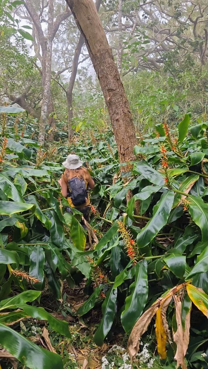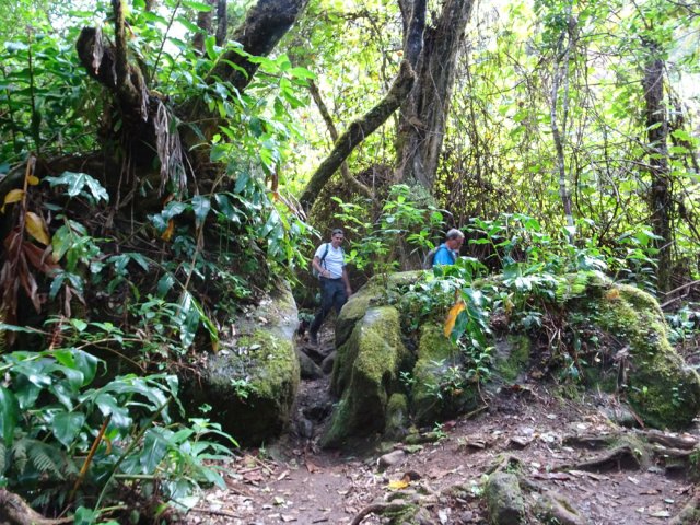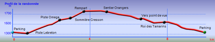 La boucle, dans le Bois de Sans Souci et la réserve Biologique des Hauts de Bois de Nèfles, emprunte certains sentiers déjà publiés sur le site. Cette boucle, à l'initiative de Marc, présente dans sa partie sud l'Ancien Sentier Lebreton, une piste connue des vététistes ainsi qu'un sentier étroit mais bien commode pour couper les longs lacets de la Route Forestière Oméga. Le cheminement s'effectue à moins de 200 m du Sentier Françoise Francia mais la forêt, le sol et l'attrait en général sont très différents. La boucle perd un cœur en raison de cette piste qui, heureusement s'effectue en début de boucle. La sommière Cresson a depuis longtemps disparu mais un sentier demeure entre les lacets ou le rempart pour grimper de manière rectiligne vers les superbes points de vue sur Mafate à la verticale des îlets des Orangers. Une manière de varier les façons de rejoindre l'Îlet Alcipe non prévu sur cette fiche. La montée effectuée, ce n'est que pur plaisir de marcher en bordure de rempart pour bénéficier de splendides panoramas si l'on a pris soin de partir assez tôt. Plus bas, ce seront d'immenses étendues de forêts de bois de couleurs, hélas totalement envahies de longoses. Quelques spécimens d'arbres (bois maigres, tans rouges, mahots, change écorce et bien évidemment tamarins des hauts) méritent fréquemment une petite halte pour les admirer. Comme la randonnée ne fait qu'une dizaine de km, ne pas hésiter à effectuer la courte boucle vers l'Îlet Alcipe qui prendra moins d'une heure et permettra de profiter de nouveaux points de vue sur Dos d'Ane et le Cap Noir.