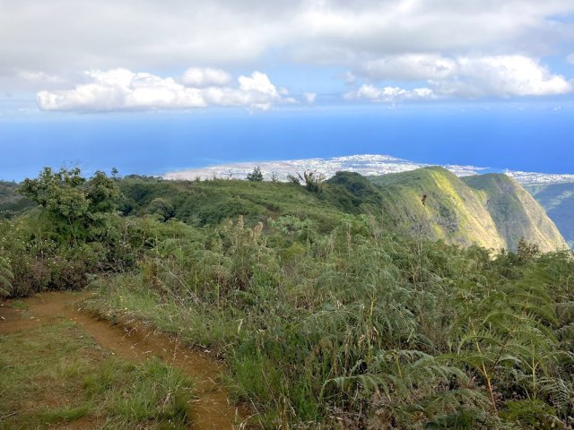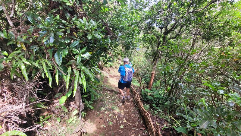 Contente de l'ouverture de ce nouveau tronçon dans un secteur maintes fois parcouru ! J'ai créé une variante pour rallonger la sortie, en prenant le bus 61 de 7h20 à St Paul, descente au terminus "Maïdo 1300 (Bègue)" ; marcher sur la RF des cryptomérias permet de s'échauffer convenablement et d'avoir quelques vues avec de belles prairies vertes.