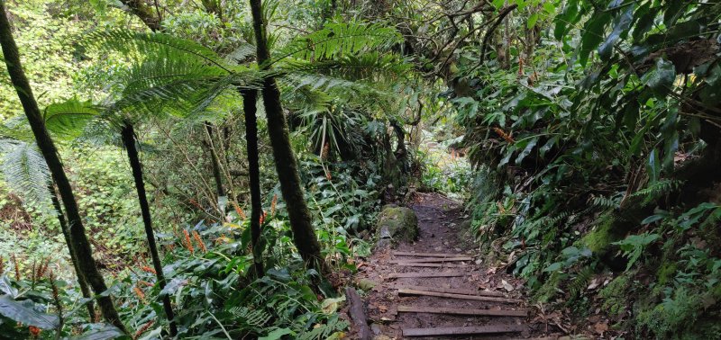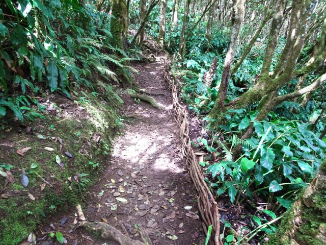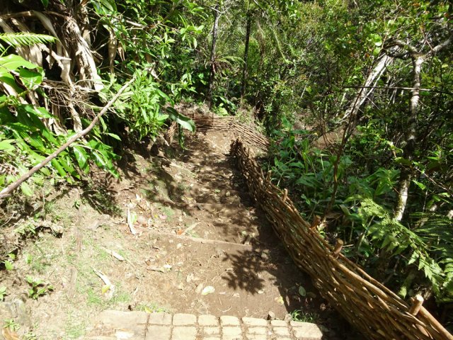 Le sentier est effectivement propre et très agréable. Par contre je n'ai pas vu énormément de boucans car le brouillard est arrivé à une vitesse fulgurante ! Quelques ombres se devinaient, des bruits de hache ou de tronçonneuse se faisaient parfois entendre... Mais déambuler dans cet environnement était très reposant et on pense déjà à la prochaine fois, avec le soleil et les vues ! Ensuite il m'a suffi de suivre le très bien entretenu sentier de bord qui redescend à Sans-Souci où j'ai pris un autre bus pour rentrer sur St Paul.