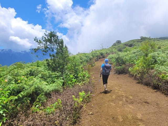 Fait le 20/4/24. Boucle rallongée avec la piste Lebreton, le sentier Cambour et l'ilet Alcipe avant de rejoindre les boucans. Bon état partout. Nous avons fait une halte au gîte Tagoute pour discuter avec le gérant, (c'est lui "Tagoute"), et son frère qui a le boucan en-dessous et nous a parlé de l'époque où, quand ils étaient enfants, ils montaient de Sans-Souci avec les parents le week-end pour jardiner ; les parents restaient dormir dans le boucan et les gamins redescendaient le soir pour remonter le lendemain... Nous en avons profité pour boire une tisane géranium-anis-citronnelle. La vue sur la pointe ouest de l'île est magnifique. Au retour nous avons croisé plusieurs familles qui allaient dormir dans les tentes. Le sentier est donc en très bon état maintenant avec cet afflux de visiteurs.