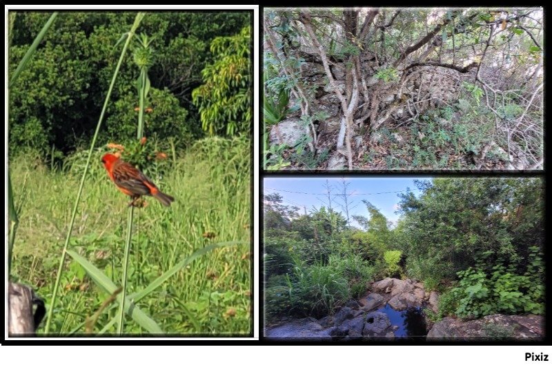 Je déconseille de faire cette balade sans application et sans trace gpx. En raison du passage récent du cyclone Garance, la végétation a bien poussé, notamment dans la 1re partie, prévoir pantalon, chaussures fermées, manches longues et bâton, voir petite machette à cause des épineux et chocas. Les 3/4 du sentier de cette 1re partie ne posent pas de problème mais parfois ce n'est pas clair, j'ai cherché le sentier à plusieurs reprises dans la végétation, impossible de le trouver sans trace .gpx ni GPS. Si vous aimez les courses d'orientation pas de problème :) Sorti du maquis pas de problème particulier. Les raccourcis entre les habitations sont sympas, l'un d'eux étroit était envahi par les herbes, sur le coup on a un doute, mais ça passe. Hautes herbes également dans les chemins d'exploitation entre les champs de canne. Jolis points de vue sur la côte ouest : Pointe des Trois-Bassins, Trou d'eau, etc.