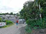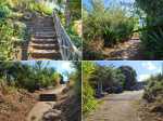 La randonnée débute au Chemin d'Armanet, dans le premier lacet rencontré depuis le dernier croisement de routes. Emprunter tout d'abord une large piste où circulent les véhicules des rares habitants de la zone (Photo 1). Très vite, après la dernière bifurcation, le chemin se transforme en sentier agréable (Photo 2). La végétation n'a rien d'extraordinaire mais il est plaisant de marcher sans effort dans la verdure (Photo 3). Les panoramas sur l'océan du côté de La Saline et de l'Ermitage sont fréquents (Photo 4). Les roches envahies de faux poivriers et de chocas sont de plus en plus nombreuses sans pour autant ralentir la marche (Photo 5). Cependant, quelques tronçons assez courts comportent de hautes marches dues à ces roches empilées (Photo 6). On retrouve très vite des zones de verdure où les traces et bouses montrent que les bestiaux aiment venir y brouter (Photo 7). Le sentier traverse la Ravine de la Souris Chaude près d'un vertigineux cassé sans doute impressionnant lorsque coule la cascade (Photo 8). On longe d'ailleurs plus loin la très profonde vallée de cette ravine très souvent à sec (Photo 9). Le sentier, toujours aussi rocheux, semble parcouru par les joggeurs du coin (Photo 10). On parvient à des murs de soutènement destinés à retenir la terre pour de très anciennes cultures désormais recouvertes de fougères, chocas et poivriers (Photo 11). Au lieu de remonter vers le village, le sentier entame une descente vers la droite (Photo 12). Le paysage change peu et la marche est toujours aussi agréable (Photo 13). Après cette courte descente, il remonte assez rapidement vers Bois de Nèfles en devenant plus étroit mais encore facile à suivre (Photo 14). A l'approche des premières habitations, quelques arbres fruitiers et cultures de manioc ou de maïs remplacent le maquis que l'on vient de traverser (Photo 15). Emprunter la petite rue qui remonte dans le village (Photo 16). En partant sur la gauche, on parvient à un escalier, début du raccourci du Sentier de la Halte entre cases et jardins évitant un long détour du Chemin Blanchard (Photo 17). Une fois le Chemin Blanchard atteint, en emprunter un tronçon jusqu'au croisement suivant. Parti à droite sur la Rue des Vavangues qui débute en forte montée et se poursuit plus loin par une belle allée bétonnée passant entre fourrés et habitations (Photo 18). Partir à gauche sur le Chemin Desbassyns jusqu'à une petite ravine. Entamer la montée par l'escalier du Sentier des Liserons qui effectue un virage vers la gauche et se poursuit à nouveau par une allée bétonnée puis en ruelle jusqu'à la Rue Gabriel Mareuil (Photo 19). Poursuivre à nouveau vers la gauche, franchir la Ravine de la Souris Chaude et rejoindre un croisement proche d'un château d'eau d'où l'on profite de larges panoramas sur la mer (Photo 20). C'en est terminé de la courte partie urbaine de la boucle en quittant Bois de Nèfles par le Chemin Mareuil qui rejoint la RD14 entre les champs de canne (Photo 21). Il n'y a que 400 m à effectuer sur cette départementale mais la circulation y est assez importante. Prendre donc garde pour rejoindre la première piste à droite après un lacet et entamer la descente sur le sol herbeux (Photo 22). La pente est faible et la marche facile (Photo 23). Rejoindre pour la troisième fois la RD14 et ne pas manquer le départ du dernier sentier entre deux routes en cul de sac menant à des habitations (Photo 25). Le sentier semble envahi par les lianes mais le passage se fait sans encombre (Photo 26). Traverser une ruelle puis poursuivre sur une trace alternant fortes pentes et zones plus plates (Photo 27). On retrouve le véhicule stationné à la fin du sentier, en état de marche, et non comme bien d'autres dans les talus bordant la piste (Photo 28).