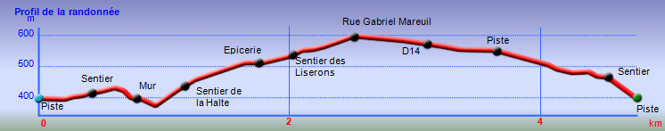 Rien à dire sur le parcours en lui-même qui ne pose pas de problèmes. Attention toutefois, dans le sens de la fiche, après l'épicerie nous sommes allés à droite et avons continué sur la ruelle bétonnée comme indiqué et nous sommes arrivés au bout de la ruelle à une piste fermée par une chaîne avec un panneau "Propriété privée - Défense d'entrer". En venant dans l'autre sens, donc du sentier des Liserons, on tombe sur une pancarte "Entrée interdite" accrochée à un arbre. J'ai bien vérifié la trace et pour moi pas d'erreur nous sommes passés par là où il fallait. Panneau et pancarte ont dû être mis là après la création de la fiche je suppose. Je n'ai pas réussi à avoir plus de renseignements, affaire à suivre.