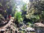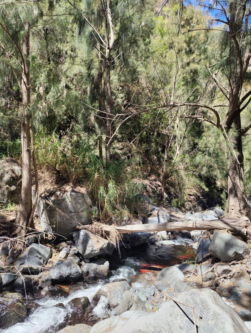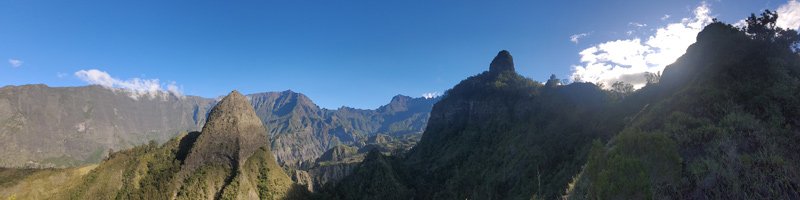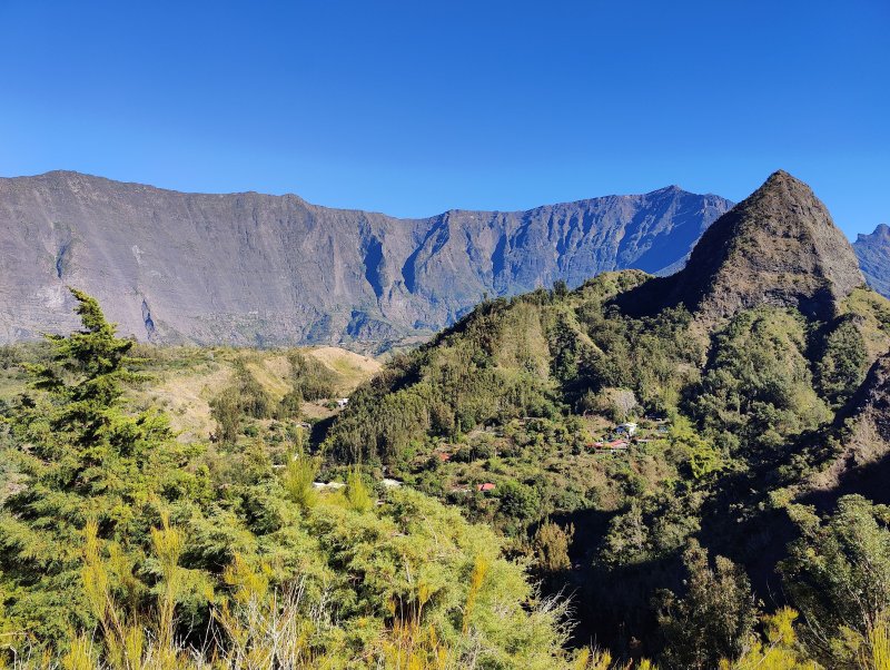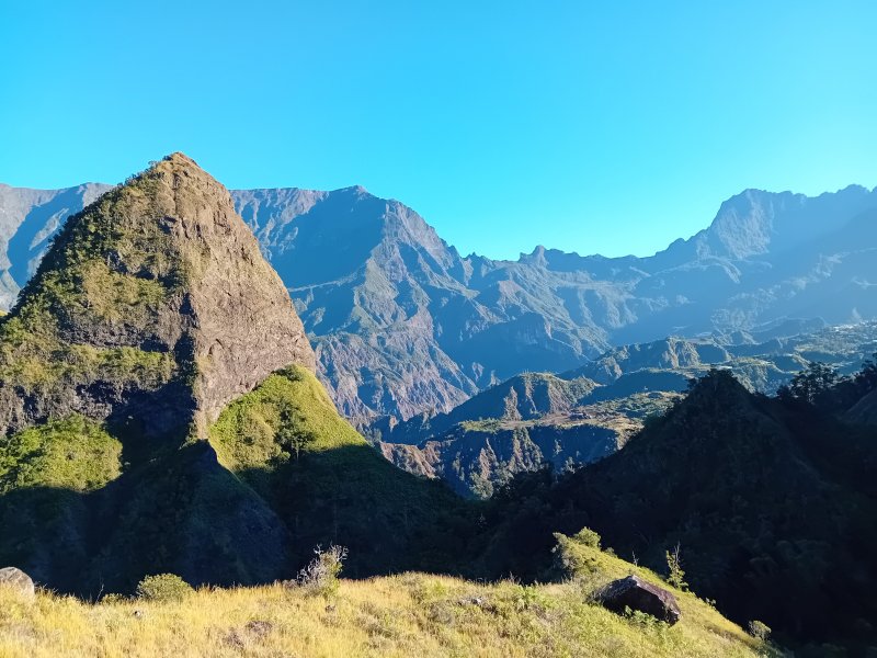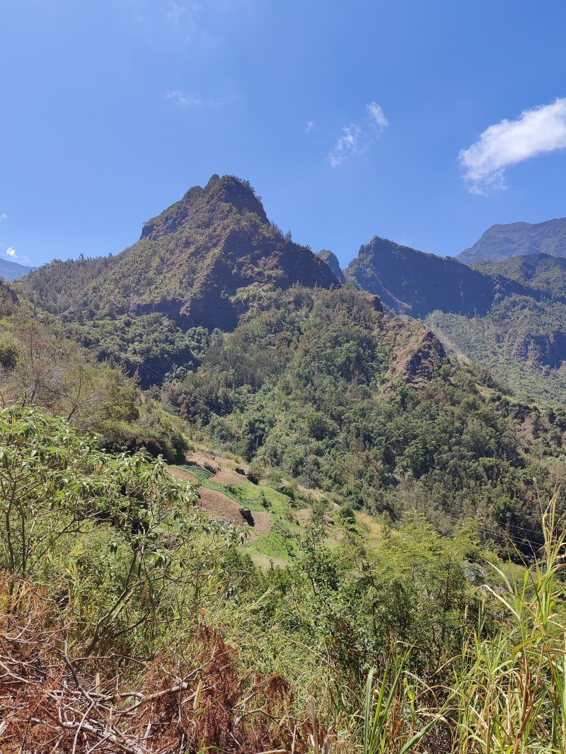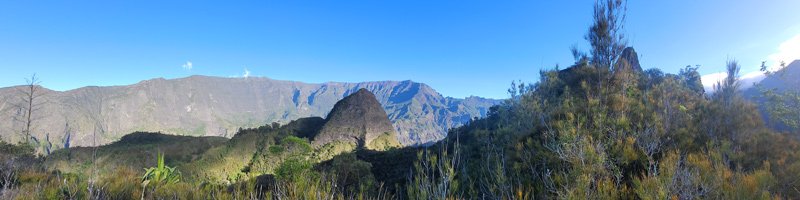 Cette fiche propose deux boucles imbriquées pour la bonne raison que la première est trop courte pour l'organiser spécialement. Elle présente l'originalité de se rapprocher du Piton Papangues dominant Peter Both en marchant tout d'abord dans le tunnel puis au-dessus du même tunnel par l’arête qui le domine avant de rejoindre le sentier de Cap Noir, hélas toujours fermé. Le vieux sentier vers le Piton Papangues, toujours marqué sur la carte IGN, abandonné dans les années 70, reste encore bien praticable, principalement en raison de la difficulté qu'ont les plantes à y pousser sereinement. Le sol est sableux et sec, rocheux et très pentu, ne facilitant guère l'implantation des grands arbres. Si cette courte aventure parfois vertigineuse ne convient pas à tous les randonneurs, la suite, en revanche, permettra une nouvelle balade dans le village de Peter Both puis sur le sentier menant à Palmiste Rouge par un passage au plus près du Petit Bras de Cilaos. Une agréable manière d'allier recherche de sentier lontan, visite d'un village mal connu ou baignade dans le Petit Bras de Cilaos. Il est déconseillé d'effectuer la première boucle avec des enfants en raison des à-pics dangereux très glissants ou du sentier du Cap Noir rendu à la végétation par l'ONF. La grande boucle, elle, convient à tout le monde. Les allergiques au macadam oublieront la dernière montée vers le tunnel en se régalant des panoramas sur le Gros Morne de Gueule Rouge et tous les pitons entourant le paisible village de Palmiste Rouge.