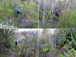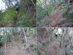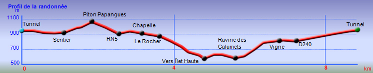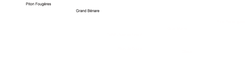 Boucle du Piton Papangues : La randonnée débute au parking du tunnel de Peter Both, côté Palmiste Rouge. Emprunter l'étroit boyau creusé dans la falaise en utilisant le trottoir pour éviter la circulation (Photo 1). Les claustrophobes pourront débuter aux dernières habitations de Peter Both mais devront tout de même traverser en fin de deuxième boucle. A la sortie, en se retournant, jeter un œil sur le rempart qu'on traversera bientôt après avoir effectué la montée sur l'ancien sentier (Photo 2). Marcher vers le village et bifurquer à gauche sur la première petite route qui se prolonge par une piste entre quelques habitations cachées par la végétation. Après moins de 200 m, le sentier débute discrètement à gauche en remontant un petit talus (Photo 3). Il semble encombré sur les premiers mètres mais cela ne dure guère. On se retrouve sur une belle trace correctement conservée avec quelques arbustes tentant de pousser au mieux (Photo 4). La montée est faible à travers les troncs de filaos squelettiques. La marche s'effectue donc le plus souvent sur les aiguilles tombées au sol. Le sentier frôle une aire sommaire de repos avant de bifurquer à gauche et d'entamer une montée plus forte (Photo 5). On aperçoit quelques habitations de Peter Both au pied du Piton Fougères encore à l'ombre si le départ a été trop matinal (Photo 6). Prendre ou non la prochaine bifurcation. On se retrouve bientôt sur l'arête principale menant au Piton Papangues. On arrive près d'un pylône électrique d'où l'on bénéficie de superbes points de vue à 360° sur toute la région. Le sentier est encore bien visible en reprenant la direction du Piton Papangues (Photo 8). La montée se poursuit dans les filaos jusqu'à un très discret nouvel embranchement (Photo 9). En partant sur la droite et en prenant garde à l'impressionnant vide sur la droite, se rapprocher de l'arête très aigüe séparant du Piton Papangues qu'on devine tout près. L'étroitesse du rein, la friabilité du sol et le manque de prises pour les mains doivent décourager de poursuivre par cet itinéraire (Photo 10). Profiter de la vue plongeante sur le parking laissé en début de boucle ainsi que sur le village de Palmiste Rouge et la vallée de la Ravine des Calumets (Photo 11). Rejoindre la bifurcation et entamer la descente vers le pied du Piton Fougères qu'on peut admirer depuis le début du parcours (Photo 12). Le sentier est toujours correct au début de la descente pouvant comporter quelques raidillons où les branches sont les bienvenues (Photo 13). La végétation est assez rase et donne l'impression de pouvoir marcher n'importe où. Cependant, on distingue ça et là des rubalises laissées par d'autres "explorateurs", bien utiles pour conserver l'azimut dans les herbes et jeunes galaberts (Photo 14). A l'approche d'une petite ravine, on se retrouve sur l'ancien sentier du Cap Noir abandonné depuis l'éboulis surplombant la cascade. On a conservé l'autre partie menant à la Plateforme. Pourquoi ne pas envisager une remise en état de ce tronçon avec point de vue sur la cascade ? Dommage. Le passage est encore possible à travers les jouvences et galaberts (Photo 15). Les portions, déjà étroites à l'époque, ont rétréci avec quelques éboulis proches de la petite ravine ne masquant pas le sentier (Photo 16). On parvient à la RN5 où l'on retrouve la partie effectuée en début de boucle.