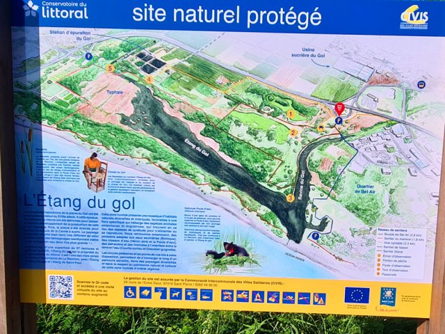 Jusqu'en 2023, les randonnées à l'Etang du Gol s'effectuaient du côté nord ou côté sud de l'étendue d'eau parfois envahie de laitues et jacinthes d'eau. Depuis la construction d'une passerelle enjambant la Ravine Maniron, il est désormais possible d'en effectuer le tour sans se mouiller les pieds. Le panneau situé au parking donne d'ailleurs des idées de balades. Cette dernière boucle proposée dans la région se combinera à merveille avec le tour des gravières afin de visiter toutes les dernières installations proposées par le Conservatoire du Littoral. Le terrain est totalement plat et ne demande aucun effort. Attention à la chaleur imposant de ne pas oublier la boisson. Prendre garde aux fortes pluies pouvant noyer le gué amont et aux fortes houles recouvrant les galets du gué aval, le rendant dangereux pour qui tenterait de le franchir. Une paire de jumelles dans le sac à dos pourra servir à l'observation des oiseaux aquatiques, surtout en période de migrations. Elles seront même utiles entre juin et octobre pour guetter les geysers des baleines sautant au large. La boucle peut également débuter au parking habituel situé près de l'ancien pont de chemin de fer détruit.