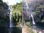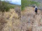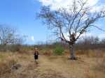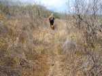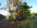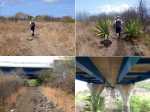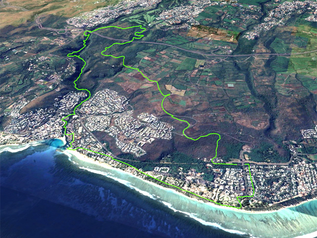La randonnée débute ici à l'arrêt de bus des Filaos. Possibilités de stationner si on vient en véhicule. Juste en face de l'arrêt de bus, se trouve une large allée bien entretenue entre les habitations. Cela permet de se rapprocher de la mer sans passer par la route. L'endroit est calme, désert, verdoyant et arboré (Photo 1) Partir à droite à la première rue puis, très rapidement, poursuivre à gauche sur une nouvelle allée menant à la plage. Si d'autres circuits présentés sur le site empruntaient la plage pour marcher, il est proposé ici de la longer par un des nombreux sentiers faciles à repérer près du panneau du Conservatoire du Littoral (Photo 2). On est assez près du lagon pour s'en rapprocher et assez loin des habitations pour ne pas être gêné. Plus loin, les sentiers pénètrent dans des plantations et il est préférable d'emprunter la piste longeant les jardins (Photo 3). A l'approche de la Rue de Bourbon qui mène au port de Saint-Gilles on peut choisir entre la plage sableuse et la route bordée d'une bande piétonne ou cyclable (Photo 4). Cette courte portion s'effectue rapidement. Bifurquer à gauche vers le parking du port puis contourner les différents bassins pour se diriger vers la première passerelle rejoignant l'îlot central (Photo 5). On profite ainsi de panoramas sur la Plage des Roches Noires et sur le port lui-même, toujours en mouvement, surtout à la période des baleines (Photo 6). Après avoir emprunté trois de ces passerelles, suivre le sentier bétonné en rive droite de la Ravine de Saint-Gilles et tourner à droite sur la Rue du Général de Gaulle. Marcher jusqu'à la ravine, la dépasser et emprunter le sentier des Caméléons débutant à la baleine chamarrée au centre d'une placette (Photo 7). Le sentier des Caméléons est connu des randonneurs effectuant le circuit du Jardin Bottard à partir du théâtre. Il longe la ravine toujours en eau, la traverse par des gués aménagés et ne s'éloigne jamais des berges pour une véritable promenade (Photo 8). Longer petits champs, bambous et taros jusqu'au dernier gué avant la montée au théâtre. Continuer tout droit après le croisement sur ce qui était un sentier botanique qui a mal vieilli. On y rencontre d'énormes touffes de gros bambous (Photo 9) et de nombreux vestiges du canal transportant l'eau autrefois (Photo 10). Le sentier reste facile à suivre jusqu'au barrage de récupération des eaux alimenté par de petites chutes (Photo 11). Traverser sur l'écluse glissante et entamer la remontée inédite de la Ravine Saint-Gilles. Les traces de passage existent mais sont discrètes. Quelques contorsions et escalades sont nécessaires pour franchir les rideaux de liane papillon ou les grosses roches (Photo 12). Jamais on ne traverse la rivière. Jamais on ne s'en éloigne de plus de 20 mètres. On reste toujours en rive gauche sur le même type de terrain envahi de lianes, de bambous, de papyrus ou de roches (Photo 13). Plus haut, après 30 minutes de hors sentier, on entend enfin couler une cascade. On se retrouve en rive gauche du Bassin des Cormorans pour admirer la petite cascade et son grand bassin d'une manière inhabituelle (Photo 14). Traverser la ravine puis la bambouseraie et se diriger vers la ruine bordée d'un escalier assez raide (Photo 15). Emprunter l'un des sentiers classiques menant au Bassin des Aigrettes en suivant un canal toujours en eau (Photo 16). La visite à la haute cascade n'est pas obligatoire surtout qu'on en a une très belle vue d'ensemble en remontant la forte pente menant au canal du Bassin Malheur (Photo 17). Ce dernier, issu d'une résurgence, est en général assez fréquenté des baigneurs, excepté le matin de bonne heure (Photo 18). Contourner le bâtiment, grimper la très forte pente constituée de grosses roches et rejoindre l'échelle permettant de franchir la dernière falaise (Photo 19). Plusieurs itinéraires mènent au pont de la RN1 enjambant la Ravine de Saint-Gilles. Descendre l'escalier jusqu'à la ravine et la traverser pour remonter vers la savane couverte d'herbe jaune et parcourue de nombreux sentiers ou pistes. Le but est de traverser cette savane en utilisant des itinéraires non encore publiés sur ce site (Photo 20). Le circuit proposé se rapproche du golf puis rejoint une piste passant à nouveau sous la Route des Tamarins en rejoignant un corral fait de tôles ondulées. Poursuivre en descente en direction de la station de pompage de Moulin Kader dans la même savane aride ponctuée de quelques arbres chétifs (Photo 21). On devine la toiture rouillée de la station depuis la piste (Photo 22). Une fois au carrefour de la station, filer tout droit en direction d'une vaste zone cultivée traversée de larges pistes en terre ou bétonnées. On traverse ainsi de vastes cultures de pitayas, manguiers, fruits de la passion et même une vigne expérimentale entourée de grillages (Photo 23). La RD100 se remarque de loin à la circulation. Une fois sur cet axe très fréquenté, bien rester sur le sentier qui lui est parallèle durant quelques centaines de mètres (Photo 24). La zone traversée n'est pas la plus agréable de la journée mais on bénéficie cependant de belles vues en direction du lagon et de Saint-Gilles (Photo 25). Quelques petits sentiers partent sur la droite en direction de la nouvelle route menant au collège. Emprunter l'un d'entre eux entre épineux et ordures lancées depuis les véhicules puis longer cette route jusqu'au rond-point de la RD100 (Photo 26). Il faut, hélas, suivre à nouveau la RD100 sur moins de 500 m mais on rencontre également plusieurs sentiers partant sur la droite. Bifurquer sur l'un d'entre eux et trouver une belle trace dans les hautes herbes (Photo 27). La longue fin du parcours, tout en descente, sillonne entre les épineux jusqu'au hameau de l'Œil de Bœuf (Photo 28). Rejoindre la route, partir à gauche et marcher jusqu'à l'arrêt de bus, fin de la boucle.