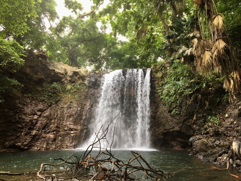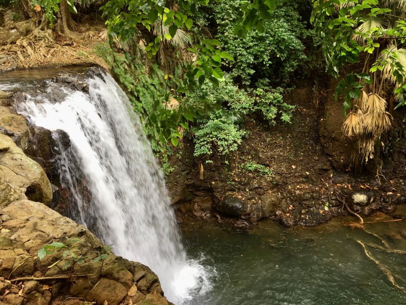 Souillac, la plus septentrionale des villes de Maurice n'est pas la plus touristique. Des hôtels de luxe n'y sont pas implantés comme sur la côte ouest. La plage de Gris-Gris et la Roche qui Pleure attirent cependant les touristes déposés là, pour quelques minutes, par les taxis. Trop courte pour mériter une fiche, cette sortie a donc été rallongée pour s'approcher de trois cascades dont la superbe Cascade Mamzelle tombant d'un cassé de la Rivière Bain des Négresses. La marche s'effectue principalement à plat et les sentiers empruntés montrent que la zone est très fréquentée. En excluant les cascades, la sortie peut être faite facilement en famille. Les cascades, quant à elles, demandent quelques acrobaties pour s'approcher des bassins. De vieilles cordes et de rudimentaires échelles facilitent la descente pour rejoindre la plage de galets et s'approcher de la première. La deuxième se frôle par le haut. Il est possible de descendre dans le bassin de la Cascade Mamzelle en prenant garde aux rochers glissants et aux racines. Très agréable sortie à effectuer, par exemple, en matinée pour terminer à l'heure du repas au restaurant proche du parking.