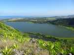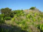 La randonnée débute à la fin de l'Avenue Centrale de la petite ville de Bambous. Pas de place de stationnement mais pas de danger de laisser le véhicule près des habitations ou au début de la petite route desservant la ferme photovoltaïque Sarako située au pied du piton. Installé en 2014, ce premier chantier photovoltaïque fournit 20 000 foyers en électricité. Rejoindre la petite route bétonnée menant à une case. Entre le croisement et la case débute le sentier facile à repérer sur la gauche (Photo 1). Il est étroit, bordé d'herbes et de quelques plantes locales (Photo 2). Aucune difficulté pour le suivre malgré la rareté des traces de peinture jaune. Peu fréquenté, il s'envahit parfois de hautes herbes, de quelques galaberts et chocas sans empêcher l'ascension (Photo 3). En d'autres endroits plus rocheux ou arides, seuls les chocas semblent résister au manque d'eau (Photo 4). Les points de vue s'agrandissent au fur et à mesure de la montée. On a sous les yeux toute la ville de Bambous, sa zone commerciale et le regard porte jusqu'à la Tourelle du Tamarin et Flic en Flac (Photo 5). Une zone rocheuse plus importante que les autres donne l'impression qu'on arrive au sommet. Elle se contourne par la droite par quelques hautes marches qui font gagner en altitude (Photo 6). La végétation s'appauvrit avec l'altitude pourtant faible, herbes et chocas représentent l'essentiel de la végétation (Photo 9). Les rares arbres donnent un peu d'ombre (Photo 10). Depuis le départ, on remarque ces grands mille pattes à épaulettes qui se multiplient le long du sentier, obligeant à regarder constamment où poser les pieds. L'insecte de 5 cm est grégaire et des dizaines d'entre eux peuvent s'agglutiner sur le passage (Photo 11). Un dernier coup de reins permet d'atteindre le point culminant de 476 m (Photo 12). Le sentier se poursuit sur un petit plateau sans beaucoup de végétation où la trace est bien repérable (Photo 13). Il descend ensuite vers un col entre deux monts (Photo 14). Une zone rocheuse se présente. Il faut enjamber les rochers en prenant garde à la chute (Photo 15). 100 m plus loin, on parvient sur une nouvelle zone rocheuse nommée Mount St-Pierre viewpoint (Photo 16). C'est l'endroit idéal pour une pause et observer les magnifiques paysages. Vers le sud, la Montagne des Remparts laisse penser qu'on ne peut y grimper tant les flancs sont abrupts (Photo 18). Au nord, le lac artificiel de la Ferme Réservoir borde la ferme photovoltaïque (Photo 19). Devant, dans le sens de la marche, on devine le sentier qui se poursuit jusqu'au nouveau col (Photo 20 ). Quitter le viewpoint et entamer une très forte descente rocheuse pouvant incommoder les marcheurs souffrant de vertige (Photo 21). Les mains sont indispensables pour assurer la descente (Photo 22). On sait que l'on est sur le bon sentier aux traces discrètes laissées par les chaussures des rares marcheurs venant dans cette zone (Photo 23). Une fois cet écueil franchi, le col est très facile à rejoindre pour de nouveaux points de vue (Photo 24). Sur la gauche, on arrive à la fin de l'étang (Photo 25). Le sentier semble se terminer et on ne remarque aucune trace sur l'arête en direction du nouveau piton. Sur la droite, quelques balises mauriciennes (papier agrafé sur une branche) attirent le regard (Photo 26). En approchant, on remarque un sentier qui plonge sur la forte pente dominant les immenses champs de canne à sucre. Il est facile à suivre. Comme il n'était pas prévu au programme et que nous ignorions sa destination, nous avons fait demi-tour et l'avons inscrit sur les circuits à tenter une prochaine fois. Le retour à l'Avenue Centrale s'effectue par le même itinéraire. La seule difficulté sera la remontée rocheuse en direction du sommet du Mont St-Pierre (Photo 27). La marche étant plus facile et plus rapide, attention à ne pas écraser ces placides diplopodes qui n'ont pas déserté le sentier malgré la forte chaleur.