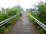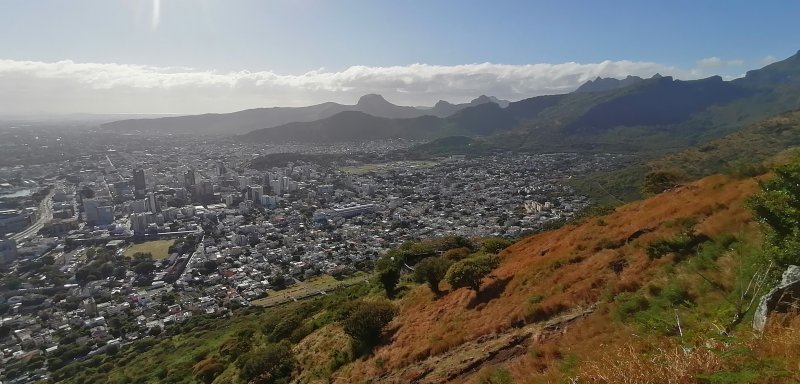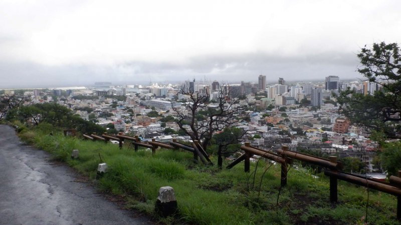 Port Louis, la capitale de l'Île Maurice est dominée par une chaîne montagneuse elle-même dominée par des dizaines d'antennes relais. Le premier sommet, Signal Mountain, est desservi par une route en lacets à forte pente servant aussi de parcours sportif. C'est la sortie randonnée la plus classique de la capitale et nombreux sont les sportifs croisés lors de cette montée. La sortie, très courte, peut être rallongée au départ par une des allées de l'esplanade accueillant Marie Reine de la Paix. Il est également possible de rejoindre par un sentier bien moins marqué le point culminant suivant, le Quoin Bluff qui s'élève à 430 m. Le sentier se poursuit encore longuement et permet de rejoindre Snail Rock à 620 m et même le Pouce en sortie aventure. Mais, faute de fréquentation et suite à un incendie, le sentier, devenu très difficile à suivre est réservé aux randonneurs entraînés, motivés, ayant le sens de l'orientation. Malgré le temps exécrable le jour de cette sortie, nous avons tout de même poussé jusqu'au Quoin Bluff mais, dans le brouillard et sous la pluie, il perd beaucoup de son allure. Ce parcours sera donc tenté à nouveau lors d'un prochain voyage sur l'île sœur.