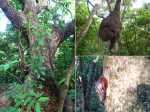 Randonnée en aller-retour : La randonnée débute sur la côte entre Quatre Sœurs et Grand Sable. Éviter de stationner au début de la piste. Un emplacement côté montagne se trouve moins de 50 m plus au nord. Entamer une montée régulière sur piste à bandes de roulement, remplacée plus haut par un chemin de desserte des champs (Photo 1). Les points de vue sur l'océan sont nombreux. A la fin de la montée sur piste, on parvient aux vestiges d'une ancienne habitation près d'une citerne d'eau. Partir à gauche et poursuivre sur le sentier du Chat et la Souris path. Il pénètre dans le sous-bois clairsemé, jamais envahi de pestes végétales. La pente est de plus en plus forte sur une trace très peu marquée et recouverte d'une épaisse couche de feuilles mortes (Photo 2). Le sentier se confond avec les traces laissées par les animaux, celles des écoulements de l'eau ou des petits éboulis. Heureusement, des taches de peinture et quelques liens attachés aux branches rassurent sur la direction à suivre (Photo 3). Il faut constamment se pencher vers l'avant ou attraper les troncs pour s'aider dans la grimpée. On parvient à la crête. La pente cesse. Partir sur la gauche et continuer à suivre le balisage sommaire à travers les arbres. On s'est élevé de 200 m, ce qui permet de plus vastes panoramas en direction de la mer (Photo 4). Côté montagne, ce sont les dents caractéristiques de la Montagne Bambou qui se remarquent le mieux (Photo 5). Totalement à droite, on distingue également le rocher du Chat. Poursuivre assez facilement sur la pente faible tout en continuant de bénéficier de splendides points de vue (Photo 6). On distingue les nombreux parcs d'élevage de poissons au large et les bateaux qui s'en approchent. La nature est belle même si les lianes papillon ont tendance à envahir, mais dans des proportions moindres qu'à La Réunion (Photo 7). Le passage, assez large, comporte quelques grimpettes et des zones pierreuses (Photo 8). Plus haut, la crête devient de plus en plus rocheuse, obligeant parfois à lever haut la jambe (Photo 9). Certaines parties rocheuses pourront s'avérer vertigineuses pour certains randonneurs (Photo 10). Plus on monte et plus le rocher du chat grossit. Il ne ressemble en rien au matou que l'on espère (Photo 12). Les derniers mètres comportent encore quelques passages sportifs où les glissages sont possibles (Photo 13). Le sentier prend fin au pied de la haute roche. On arrive près d'une tunique de couleur aperçue lors de la montée. Elle ne résistera pas au temps contrairement à la plaque de marbre rappelant l'accident de 2019. Cette plaque présente l'avantage de permettre de réfléchir sur la volonté ou non de grimper sur ce chat immobile depuis des millénaires. Si la décision est prise de poursuivre, prendre garde à toujours avoir trois points d'appui et à utiliser les aspérités naturelles du monolithe pour arriver au sommet (Photo 14). Après un dernier rétablissement, on est tout à la joie de profiter d'un magnifique 360° s'il n'y a pas trop de vent qui pourrait déséquilibrer (Photo 15). Même s'il est possible de regarder la Souris depuis ce rocher en se couchant au sol, il est préférable de redescendre très prudemment et de trouver le petit sentier qui plonge dans les goyaviers. Après 15 m de descente on peut voir la roche sans danger. Il faut là aussi de l'imagination pour y deviner une souris (Photo 16). Les randonneurs non tentés par l'aventure qui suit feront demi-tour par le même itinéraire.