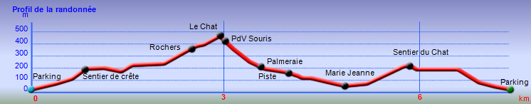Cette fiche propose une autre manière plus sportive d'atteindre le point de départ en descendant vers le village de Marie Jeanne puis en remontant vers la crête empruntée dans la montée au Chat.