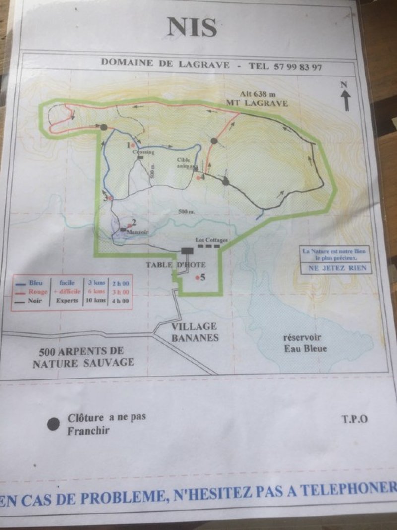 Le domaine Lagrave, situé presque au centre de l'île, propose des circuits de randonnée, des visites, des chasses privées et un restaurant. Beaucoup de familles s'y pressent en semaine comme le week-end après réservation. Pour la randonnée, inutile de réserver mais venir aux heures d'ouverture et prévoir un peu de monnaie (250 roupies en décembre 2023). Les prairies d'élevage sont dominées par des montagnes de moins de 600 m mais d'accès assez sportif. Le domaine propose plusieurs circuits très bien balisés de couleurs qu'il suffit de suivre après avoir réglé le montant de la balade. Une fois au sommet, quel que soit l'itinéraire choisi, on bénéficie au sommet de magnifiques panoramas sur une grande partie de l'île dont le Midlands Dam Reservoir. Comme son nom le suggère, on se trouve presque au centre de l'Île. Ce circuit, balisé de rouge, n'est pas le plus court mais le plus classique. Il permet de traverser la zone d'élevage et d'effectuer la grimpette jusqu'au sommet. Un autre, plus court s'effectue en une heure. Quant au plus sportif, d'une longueur de 10 km, il n'est pas à la portée de tous les randonneurs. Il est exigeant et demande un très bon entraînement.