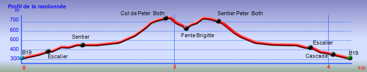 4-Faible: Souvent fermé, des critiques fréquentes, une végétation non domestiquée. Dangers possibles. Coupe-coupe ou corde dans le sac. À réserver aux initiés. Enfants à la maison. Ne jamais partir seul.