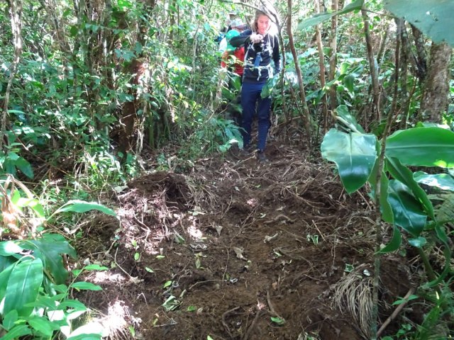 Le sentier du Piton des Merles est loin d'être le plus fréquenté de l'Ouest, sans doute en raison des longoses qui bouchent sans cesse le passage. Par temps humide, ce qui est souvent le cas, il est effectivement assez désagréable de se retrouver trempé après 200 m de marche. Par beau temps, c'est beaucoup plus facile. La trace n'est pas difficile à suivre et les longoses au sol montrent que beaucoup de randonneurs ne viennent pas les mains vides. Aucun coup de sabre n'a été nécessaire dans la première partie de cette boucle. Le retour, en revanche, a demandé un élagage qui a facilité la remontée et la remise en état de la trace. Celle-ci est donc correcte pour quelques semaines et pourra le rester s'il y a du passage. Les cascades y sont modestes, les panoramas rarissimes, les cochons sauvages invisibles, les longoses irritantes, mais nous avons tous apprécié cette sortie dans la verdure. Comme pour beaucoup de randonnées proposées sur le site, relire les temps et distances avant de partir. 1 km/h demande une certaine expérience pour terminer la boucle dans de bonnes conditions, sachant de plus qu'il n'y a aucun réseau dans cette forêt profonde. Ne jamais partir seul et avertir une tierce personne.