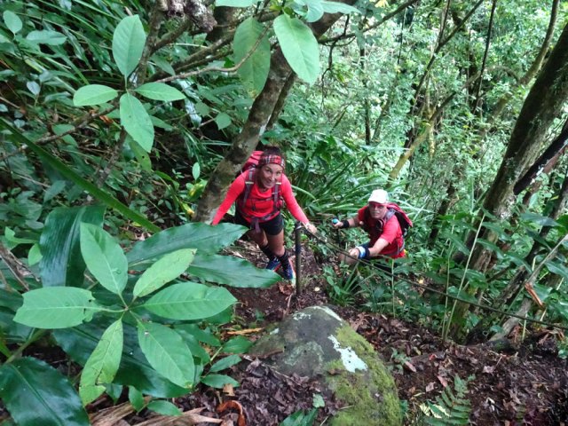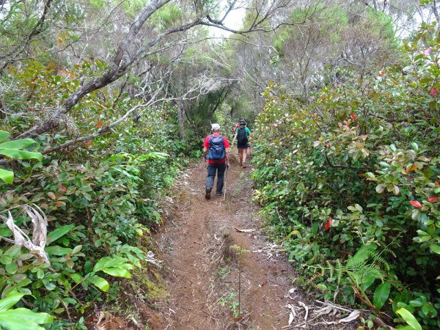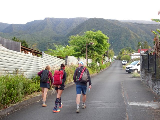 Randonnée particulière. Le sentier du Malabar Mort mérite d’être emprunté rien que pour le nom, mais en prime, on traverse de magnifiques forêts, on emprunte de belles échelles raides et d’autres passages sans échelles mais où l’utilisation des bras est impérative. La cascade est un beau bonus. Pas vraiment une cascade mais un mur végétal lors de notre passage. Il fait probablement pas bon y être en période de plues. Mais quel enchantement, ça vaut le détour. Le sentier de la pièce Jeanne était propre; la marche aisée. Puis vient la partie béton de plus en plus urbanisée. Si votre objectif est de dire “j’ai marché des Makes jusqu’à St Louis”, alors poursuivez. Les gens croisés arborent des sourires amusés en voyant nos têtes de randonneurs. Si vous n’êtes pas chauds pour traverser St Louis, alors finissez comme vous avez démarré avec le bus.