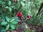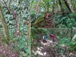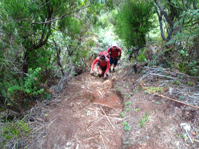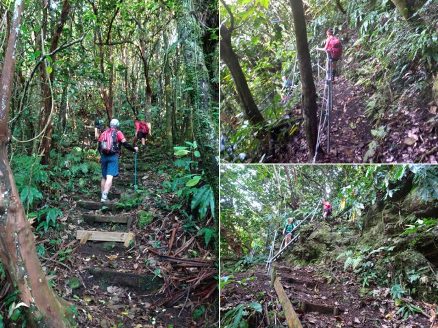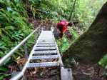 Positionnées aux mêmes endroits que les plus anciennes, toutes les échelles ont été remplacées entre le sentier de découverte et celui de Pièce Jeanne. Solidement fixées aux parois, elles ne risquent pas glisser ou se détacher. Elles comportent rambardes de sécurité et larges barreaux en marches trouées. C'est en voyant un tel travail et surtout un tel investissement que l'on se plaît à imaginer que ce sentier sera régulièrement nettoyé pour que ces échelles neuves ne se retrouvent pas coincées entre des portions envahies de longoses, vigne maronne et goyaviers.
