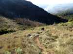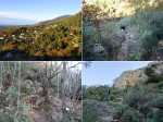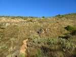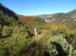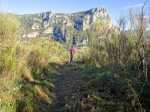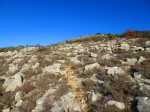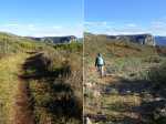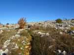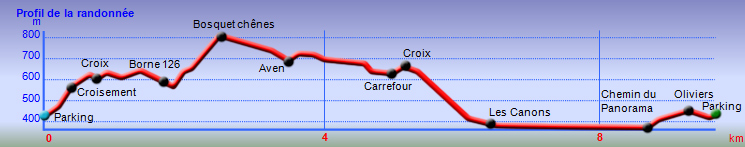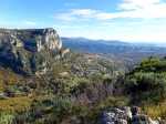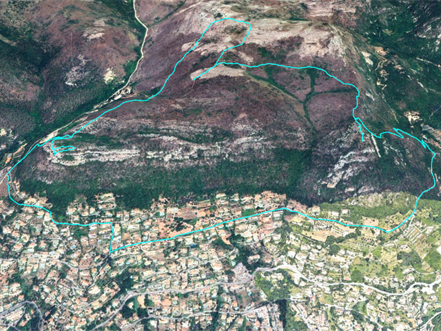 La randonnée débute à un petit parking de 5 ou 6 places au pied du Baou des Blancs sur la droite de la Route de Coursegoules. Le sentier est facile à trouver sous les chênes. Les quelques marches annoncent la couleur des 200 m qui suivent (Photo 1). La pente est assez forte sur un sol rocheux qui domine à un moment la grande carrière d'extraction de calcaire. On a d'un côté la campagne très urbanisée de la région de Vence et de l'autre les falaises calcaires du baou que l'on cherche à rejoindre (Photo 2). Après 20 minutes de montée, on se retrouve à un croisement. Avant de partir à gauche vers les Blaquières, prendre la direction du Baou des Blancs sur un sentier tout aussi caillouteux dans la garrigue, mais en pente raisonnable (Photo 3). Le sommet et son banc de repos se rejoignent en quelques minutes. On a tout loisir pour profiter du paysage car aucun obstacle ne vient gêner la vue (Photo 4). Ce sont près de 100 km de côte allant de l'Italie jusqu'à l'Esterel qu'on a sous les yeux. Côté montagne, on distingue très bien le Puy de Naouri (1024 m) et le Pic de Courmettes (1248 m) à l'horizon (Photo 5). Il est trop tôt encore pour profiter du banc et encore moins de la table d'orientation en assez mauvais état (Photo 6). Avant de reprendre le chemin inverse il est possible de suivre plusieurs sentiers sommitaux traversant la garrigue et frôlant ça et là des ruines (Photo 7). Rejoindre le croisement et filer tout droit, plein nord, sur un sentier très rocheux qui franchit les barres calcaires (Photo 8). Après une descente facile mais parfois glissante sur piste, partir à droite sur un sentier remontant en direction des Blaquières dans un paysage sans arbres (Photo 9). Beaucoup plus étroit que les précédents, il est facile à suivre (Photo 10). On profite encore des pics environnants en traversant cette garrigue odorante (Photo 11). A 800 m d'altitude, on se retrouve en plein désert où seuls le thym et la lavande arrivent à survivre (Photo 12). Il est possible d'atteindre le sommet occupé par un superbe bosquet de chênes verts dans un chaos calcaire, sinon partir à droite au premier croisement. Le terrain comporte de plus en plus des tas de pierres édifiés par les bergers pour gagner en surface de pâturages sur le plateau (Photo 13). Traverser le plateau puis entamer la descente vers le Baou des Noirs (Photo 14). Un dolmen, très difficile à trouver, se trouve sur la droite du sentier. En revanche, les ruines d'un enclos sont, elles, très visibles (Photo 15). Le croisement suivant, à la borne 124, indique plusieurs directions, dont le Baou des Noirs. Avant de prendre cette direction, entreprendre une courte descente dans le même paysage. Après 200 m, repérer le petit aven caché dans les roches à deux pas du sentier (Photo 16). Trop étroit pour un randonneur, on le laisse aux spéléologues avant de revenir sur ses pas. Le sentier menant au Baou des Noirs suit la courbe de niveau. Il est agréable et reposant avec des vues constantes sur le Baou de St-Jeannet (Photo 17). On est surpris par la présence d'arbres centenaires au milieu de cette garrigue, très rase depuis le début (Photo 18). On trouve d'ailleurs de plus en plus de bosquets au bord du sentier (Photo 19). Poursuivre tout droit à la borne 123 et rejoindre rapidement et facilement le sommet du Baou des Noirs. Les vues sur le Baou de St-Jeannet valent le détour (Photo 20). Comme le précédent, le baou est marqué d'une croix et l'on bénéficie des mêmes panoramas que deux heures auparavant (Photo 21). Profiter du spectacle avant de rejoindre le point 123. Partir sur la droite puis entamer la forte descente du Sentier des Panoramas menant vers les Canons. Il plonge par quelques lacets sur la face ombragée du Baou en direction de la Cagne coulant au fond de la vallée (Photo 22). La trace étroite est facile à suivre malgré la pente (Photo 23). Heureusement, quelques portions plates permettent de se reposer en profitant des panoramas (Photo 24). La végétation s'intensifie en fin de descente (Photo 25). Le sentier se termine à un chemin. Partir à droite puis emprunter un long escalier ombragé menant au Chemin du Riou. Durant ces deux kilomètres on marche sereinement sur une petite route étroite sans circulation et dans la verdure (Photo 26). On longe ainsi quelques habitations, des jardins de zones résidentielles isolées dans le plus grand calme (Photo 27). Guetter le Chemin des Panoramas sur la droite et l'emprunter. Partir à gauche en haut de la pente et rejoindre le début du sentier qui se poursuit de manière très agréable en longeant de nouvelles propriétés proches des lisières boisées (Photo 28). Il se termine dans une magnifique oliveraie aperçue juste avant le parking. Une fois à la Route de Coursegoules, rejoindre en quelques mètres le parking du départ.
