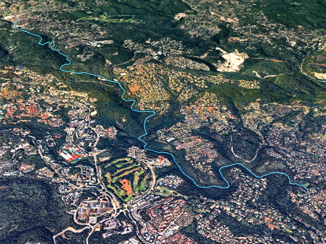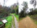 La randonnée débute ici à la fin du Chemin Georges-Antoine Durbec qu'on emprunte près de la poste du village. En cas d'impossibilité de stationner au bout de la rue, préférer un départ en ville. Le parcours commence par quelques marches qui rapprochent d'une zone humide. Un premier panneau du Service Départemental d'Incendie et de Secours précise que l'on rencontrera un panneau tous les 500 m pour se situer en cas de problème (Photo 1). Le début du sentier passe dans de vastes étendues de canisse. Plus loin il pénètre dans une zone boisée et entreprend sa descente vers la rivière (Photo 2). Une dizaine de minutes après le départ, on se rapproche de la Brague qui coule calmement sur la gauche. Une longue passerelle en bois marque le début de la randonnée sur les berges (Photo 3). Un peu plus loin, le sentier rencontre un canal dont une partie a été édifiée sur un petit pont. En passant sous l'édifice, on remarque les coulées calcaires issues des débordements ou des fuites qui ont couvert le pont de concrétions calcaires (Photo 4). Par la suite, le parcours longe au plus près ce canal désormais désaffecté (Photo 5). A l'époque, il transitait même par des tronçons rocheux évasés, aujourd'hui recouverts de caillebotis pour faciliter la marche (Photo 6). On rencontre, depuis la passerelle, des sortes de barrages naturels constitués de dépôts de calcaire recouverts de mousse (Photo 7). Ensuite le sentier traverse un beau bois ombragé, totalement à plat pour une randonnée facile, toujours au plus près de l'eau (Photo 8). On chemine en rive gauche jusqu'au pont-radier permettant de changer de rive (Photo 9). La partie la plus agréable débute ici, car le sentier devient un chemin pavé et bétonné qu'il suffit de suivre sans réfléchir en découvrant des petites chutes (Photo 10). Ce chemin évite de marcher sur les cailloux bordant la Brague ou sur les racines devenues glissantes par temps de pluie (Photo 11). On ne compte plus les bassins et petites chutes. Très peu de poissons à apercevoir malgré la transparence de l'eau (Photo 12). Les seules pentes rencontrées sont là pour éviter des rochers trop glissants sur les berges (Photo 13). L'arrivée à la Bouillide impose de traverser cet affluent de la Brague afin de poursuivre vers l'amont (Photo 14). Pas de changements, ni de rythme ni de type de sentier toujours pavé. Des haltes sont possibles pour se rapprocher des petites cascades en regagnant les berges (Photo 15). Plus d'1 heure après le départ, on parvient au pont situé à la fin de la Route de l'Agasse et son parking utilisé par les sportifs (Photo 16). La vallée semble se rétrécir mais l'impression est due à une barre rocheuse bordant la rivière (Photo 17). Les bassins créés par ces barrages de calcaire sont de plus en plus nombreux (Photo 18). Certains, plus grands, font penser à de petits étangs (Photo 19). Après quelques méandres, la Brague passe sous la D604 en direction de Valbonne. Tout près, l'ancien pont est fermé à la circulation (Photo 20). Des sentiers, souvent annoncés par des panonceaux "sentier pédestre" sont de plus en plus présents tout au long du parcours. Ils permettent de créer des parcours différents pour s'entraîner sans avoir à trop s'éloigner des villes proches. Les falaises calcaires comportent ça et là des petites grottes sans grand intérêt ou des sculptures en bas-relief recouvertes de mousse (Photo 21). Plus haut, on parvient au confluent du Bruguet reconnaissable à son charmant petit pont (Photo 22). S'il y a de l'eau dans ce superbe petit ruisseau, ne pas hésiter à le remonter sur 150 m pour s'approcher de la cascade du Bruguet. Continuer vers l'amont sur cet agréable sentier. 15 minutes après le petit pont, les premières propriétés se présentent sur les berges, signe que l'on s'approche de Valbonne (Photo 23). Un autre pont se présente à la fin du Chemin du Moulin. Le sentier se poursuit le long des berges. Une croix jaune explicite en déconseille l'accès. Prendre ses responsabilités pour découvrir ce dernier kilomètre passant près d'une grotte. Plus officiellement, emprunter alors la Piste du Moulin de l'Ange (herbeuse), délaisser la piste de la Béguine et continuer sur la Piste de la Calanque (sableuse) en direction de Valbonne (Photo 24). Cette piste rejoint la Brague après un détour vers le sud (Photo 25). Le village se rejoint par un dernier gué bétonné qui comporte de grands plots glissants (Photo 26). Rejoindre le cimetière par la partie goudronnée du Chemin de la Calanque sous une végétation touffue (Photo 27). Une petite portion de route est inévitable entre le cimetière et la Rue de la Brague permettant de pénétrer dans Valbonne. En fonction du chemin prévu pour le retour, prendre son temps pour flâner dans les rues étroites de cette bastide déserte en hiver et bondée de touristes une fois l'été revenu (Photo 28).