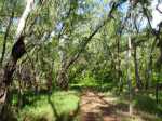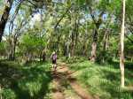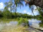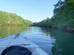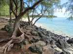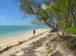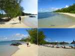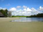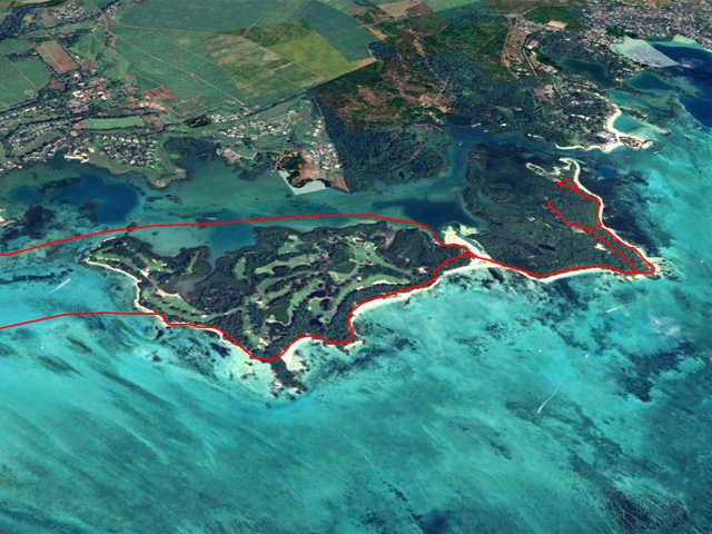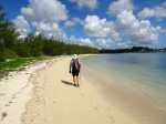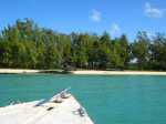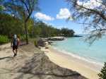 La randonnée débute ici au minuscule port de Grand River South-East où il est très facile de trouver un bateau. A moins d'être très pressé, accepter, comme le veut la coutume, de remonter auparavant la rivière jusqu'à la cascade GRSE qui se rejoint également en randonnant à pied à partir du village. La rivière est très calme et la balade reposante (Photo 1). Après un passage technique entre les rochers, le bateau effectue un demi-tour au pied de la chute (Photo 2). Il attaque ensuite le trajet vers le sud de l'île. On peut tranquillement profiter des vues sur Quatre Sœurs, le Chat et la Souris et la Montagne Bambou (Photo 3). Si de nombreux touristes empruntent le même bateau, il peut déposer tout le monde au centre de l'île, ce qui changera la randonnée côtière. Sinon, il s'arrête sur la plage la plus au sud (Photo 4). Une fois sur le sable chaud, il n'y a plus à réfléchir, la randonnée se fera à l'instinct en suivant au plus près la côte Est. Dès la fin de la plage, toutes les terres sont désormais de vastes greens accueillant chaque jour des dizaines de golfeurs (Photo 5). Si on ne repère pas de chemin en bordure de littoral, marcher simplement sur le sable en profitant des superbes paysages et des lagons transparents (Photo 6 et 7). Quand la côte est trop rocheuse, préférer les chemins ombragés sous les filaos (Photo 9). Quelques emplacements reçoivent pour la journée des groupes de touristes venus se reposer ou participer à des repas organisés localement (Photo 10). Les rochers sont très rares. Le paysage est surtout constitué de longues plages souvent désertes (Photo 11 et 12). On arrive très vite à la langue de sable qui a obstrué le chenal et relié les deux îles originelles (Photo 14). Traverser cette étroite bande et poursuivre dans les mêmes conditions le long de la côte en marchant sur le sable (Photo 15) ou sur les chemins (Photo 16). Un peu avant la pointe Nord-est, plus rocheuse, emprunter vers la gauche le chemin qui passe d'abord près de petits bâtiments. Il s'enfonce dans les filaos en direction des mangroves (Photo 17). Totalement plat, il donne l'occasion de s'éloigner de l'air marin sans fatigue (Photo 18). La première lagune, surtout bordée de filaos, ne permet pas de nager en raison de la hauteur de l'eau (Photo 19 et 20). La suivante, toute proche est bordée de davantage de palétuviers. Profiter de nouvelles vues sur le Mount Bambou ou repérer les belles fleurs de palétuviers qui donneront plus tard de longues gousses s'enfonçant dans la vase comme une flèche (Photo 21). Le chemin se transforme en sentier dans les hautes herbes (Photo 22). On parvient à un troisième spot d'eau calme dans les palétuviers (Photo 23). Faire demi-tour jusqu'à la côte, poursuivre vers le Nord avant de bifurquer en direction des terres que l'on devine sur la gauche (Photo 24). De nombreux coins de repos sont aménagés pour les touristes (Photo 25). Continuer plein ouest en reprenant un petit sentier proche de la plage (Photo 26) ou, comme depuis le début, en foulant le sable clair (Photo 27). On parvient à quelques installations de restauration où il est fort agréable de déguster une bière locale les pieds dans l'eau afin d'oublier la chaleur (Photo 28). La remontée totale de l'île étant finie, il faut désormais reprendre le chemin inverse pour atteindre le goulet entre les deux anciennes îles. L'embarcadère se trouve près de la boutique de souvenirs. Compter une bonne demi-heure pour atteindre ce nouveau point de départ depuis la halte rafraîchissante.