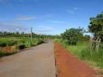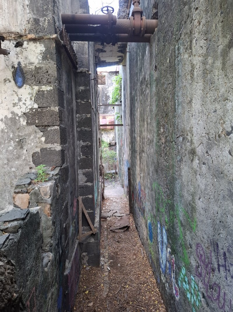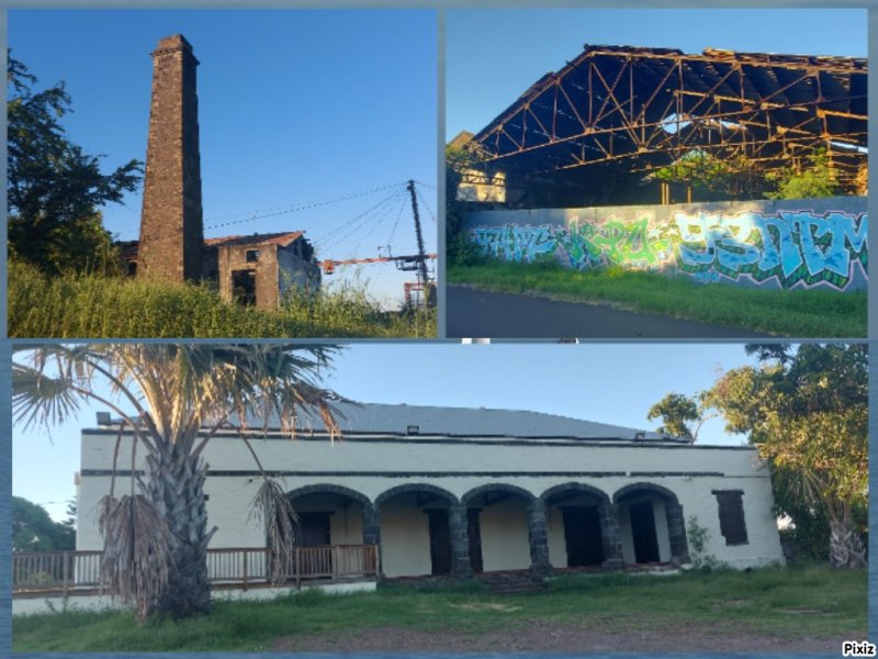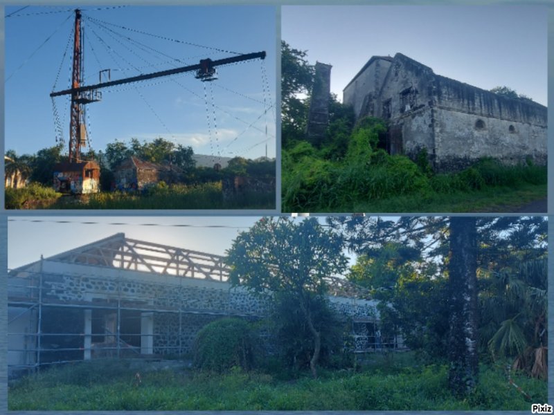 Randonnée pour marcheurs sans handicap : La zone de l'ancienne usine sucrière de Pierrefonds est très vaste. Elle comporte encore tous les bâtiments de l'époque ainsi que des grues et portiques (Photo 17). Il est officiellement interdit de pénétrer dans les bâtiments mais on repère très vite les sentiers ou portes ouvertes dans lesquelles s'engouffrent visiteurs, amateurs de graffitis, photographes urbex et peintres de tous les horizons artistiques. On peut faire le tour complet de l'usine en commençant par les bâtiments de stockage (Photo 18). Ils ont mal vieilli et il est préférable de rester en périphérie plutôt que de pénétrer dans les ruines (Photo 19). Les amateurs prendront beaucoup de temps pour tout voir (Photo 20). La différence est immense entre la clinique moderne et, à quelques mètres, les grues en train de rouiller (Photo 21). Le bâtiment principal, celui qui abritait les machines, est le plus dangereux avec des escaliers, des plateformes ou des grosses machines rouillées qu'il faut éviter à tout prix. L'immense grue qui le frôle tient encore debout (Photo 22). Tant qu'elles sont encore solides, il serait nécessaire de les restaurer un peu afin de garder sur l'île un vestige de cette période où les usines se comptaient par dizaines (Photo 23). Un seul bâtiment est en état. Il s'agit en réalité du Théâtre de Pierrefonds, un théâtre en activité appartenant à la Ville de Saint-Pierre, en gestion commune avec Lalanbik, le Centre de Développement Chorégraphique de l'Océan Indien. (Photo 24). Après cette visite qui dure plus ou moins longtemps en fonction de l'intérêt de chacun pour les vieilles pierres, reprendre le chemin inverse et traverser la RN1 par la longue passerelle. Au bout, reprendre l'escalier, la rampe ou l'ascenseur et quitter l'ouvrage (Photo 25). Le parking est tout proche. Il est aussi possible d'emprunter des petites routes transversales utilisées par les joggers pour leur footing (Photo 26). On peut se balader à l'envie sur les trottoirs, pas toujours très bien entretenus, dans un paysage de friches peu attractif (Photo 27). Il y a le plus souvent des pistes cyclables ou de larges trottoirs pour effectuer ces explorations (Photo 28). Ce sera différent lorsque la ZAC sera terminée et toutes les friches occupées par des magasins ou divers ateliers.