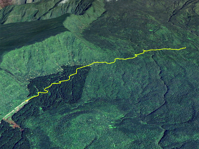 Cette randonnée pour aventuriers confirmés et motivés comporte de grandes similitudes avec l'incursion en forêt pour rejoindre le Piton Bébour. On y retrouve, du début jusqu'à la fin, les écorces entamées de violents coups de machettes pour laisser les repères indispensables qui évitent de s'égarer. La forêt est tout aussi magnifique avec les arbres souvent centenaires qui ponctuent le trajet de haltes admiratives mais imposent de souvent se baisser avec un sac à dos qui se remplit petit à petit de mousses, feuilles mortes et terre humide. Les rares inconditionnels qui tenteront cette sortie éviteront les vêtements neufs ou de couleur claire ! Après une première partie en direction du Piton des Neiges sur une large piste puis sur un sentier envahi de racines, la bifurcation est assez facile à deviner sur la droite. Une fois sur le sentier créé par les passages réguliers des chasseurs, cueilleurs ou ramasseurs de plantes, il ne faut pas trop se presser. Le sentier, qui semble rectiligne lorsqu'on regarde la carte, est en réalité constitué de dizaines de très courts contournements de fourrés, arbres et touffes de vigne marronne. La trace GPS fournie ici doit servir de fil d'Ariane mais ne doit pas être suivie à la lettre. La recherche des coches sur les arbres est beaucoup plus salutaire. La forêt n'est jamais plane. Elle est entrecoupée de dizaines de petites ravines, la plupart du temps à sec, qui grossissent le Bras Chansons ou la Rivière des Marsouins. Ces montées et descentes successives sont très vite fatigantes d'où l'importance d'avoir un bon entraînement. La trace indique notre expédition mais il est conseillé, pour débuter, de ne rejoindre que le Bras Chansons, voire le gros tamarin impressionnant à 1600 m d'altitude pour les plus curieux. Une boucle est à l'étude. A suivre dans les mois qui viennent.