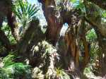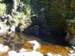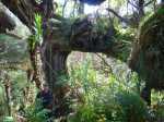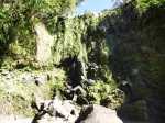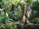 La randonnée jusqu'au Bras Chansons débute à la fin de la Route Forestière 22 de Duvernay bordée d'exploitations de cryptomerias qui peuvent encombrer la route par des grumes ou de la terre. Quitter le parking situé à la fin de la route et entamer la montée en direction du Piton des Neiges par une large piste (Photo 1). Après une série de virages où la marche est très aisée en raison de la pente faible et de la largeur du chemin, prendre à gauche le sentier officiel traversant les jouvences qui recouvrent le sol dans la belle forêt de cryptomerias (Photo 2). Lorsque les cryptomerias disparaissent, ils sont remplacés par la belle forêt primaire de Bébour. Aucun regret quant au paysage. La forêt et ses fougères sont largement plus agréables à l'œil, même si le sentier est un peu envahi de racines et de pierres (Photo 3). On rencontre de magnifiques arbres centenaires, tortueux et difficiles à reconnaître à la couche d'épiphytes qui les recouvrent. Les bois maigres sont toujours les plus tortueux (Photo 4). Le sentier, tortueux et accidenté ne pose aucune difficulté malgré les hautes marches et une échelle à franchir facilement (Photo 5). Quelques minutes après l'échelle, le sentier oblique à angle droit vers le Kerveguen. Juste avant ce changement de direction, 5 m après une arche végétale, guetter sur la droite quelques troncs marqués sur l'écorce (Photo 6). Les chasseurs sont sans pitié pour ces arbres qui résistent cependant. Il y en aura bien d'autres tout au long de la sortie (Photo 7). Le sentier est mieux marqué qu'au croisement. Il se suit facilement et les encoches ne sont pas encore indispensables. Le sol n'est jamais plat. Il faudra, durant plus de 3 heures, effectuer montées courtes et descentes glissantes afin de franchir plusieurs ravines (Photo 8). Les petits affluents du Bras Chansons descendant en direction du Piton Bébour ne sont jamais impressionnants et se franchissent directement sans avoir à marcher dans le lit (Photo 9). Certains comportent de beaux cassés ou d'imposants bassins à sec obligeant à marcher dans le fond si l'on désire s'en approcher (Photo 10). Entre les ravines, la trace est toujours visible entre gros fanjans et bois de couleurs de toutes tailles (Photo 11). Parfois, lorsque le sol est moins piétiné, rechercher les traces sur les troncs avant de poursuivre (Photo 12). Ne jamais poursuivre en cas de doute et revenir à la dernière encoche pour reprendre ses marques. Quand le cheminement est facile, admirer au passage la nature très généreuse dans ces coins reculés. Même s'ils sont souvent difficiles à identifier, les troncs à eux seuls méritent des haltes pour la photo (Photo 13). Les fanjans ne sont pas en reste avec des bosquets de troncs centenaires assez fréquents (Photo 14). La taille des arbres empêche tout point de vue. Mais, parfois, on peut apercevoir quelques sommets comme le Mazerin du côté de Bélouve (Photo 15). En prenant son temps, difficile de se perdre malgré la forêt primaire assez dense (Photo 16). On arrête très vite de compter les ravines et surtout les pentes pour y arriver et s'en échapper (Photo 17). Les premiers tamaris apparaissent. Certains ont subi de plein fouet de gros coups de vent mais restent vivants. Ils ont été tordus dans tous les sens mais résistent (Photo 18). Lorsqu'ils sont couchés au sol, le seul passage est le plus souvent en-dessous. Il faut ramper, couché au sol et malgré cela le sac reste coincé (Photo 19). Même par temps sec on reviendra crotté des pieds à la tête et il est bon d'avoir prévu un sac poubelle pour y mettre les vêtements au retour afin de préserver le coffre de la voiture ! Après des dizaines de pentes, de racines, de passages sous les troncs et de recherches de balises sur les écorces, on parvient au Bras Chansons. Une forte pente permet de rejoindre le lit encombré de rochers (Photo 20). Ne pas hésiter à remonter le lit rocheux vers l'amont (Photo 21). En quelques minutes, on parvient à un cassé où une cascade, ce jour-là à sec, a rempli un bassin lors des épisodes pluvieux (Photo 22). La visite doit être agréable après les pluies pour y voir la cascade. On remarque une petite grotte sur la falaise qui se rejoint en quelques marches naturelles (Photo 23). L'endroit qui peut abriter durant la pluie permet difficilement d'y rester pour la nuit (Photo 24). Pour une randonnée en immersion totale de 4 h en forêt de Bébour il est alors possible de rentrer en retrouvant et empruntant le même sentier. Sortie aventure après le Bras Chansons. Les curieux, habitués ou courageux, pourront poursuivre en direction de la Rivière des Marsouins. Protégée par de nombreux cassés, il est impossible de s'en approcher sans de grands détours de plus en plus difficiles à repérer en raison de l'espacement des marques sur les arbres. Le trajet traverse de magnifiques zones couvertes d'avounes dans les branles moussus. Rester sur les traces pour ne pas piétiner les sphaignes (Photo 25). Pas de changements avec les deux premières heures dans un paysage toujours identique mais comportant de plus en plus de touffes de vigne marronne. Les points de vue sont toujours aussi rares mais on peut cette fois profiter du Piton de la Plaine des Cafres (Photo 26). Marcher au moins jusqu'au grand tamarin aussi tordu que ses congénères, mais au tronc monstrueux très caractéristique (Photo 27). La poursuite vers la rivière nécessitera encore des rampements qui finiront de remplir le sac à dos de déchets végétaux (Photo 28). A moins de trouver un sentier à gauche remontant vers le Piton des Neiges, comme suggéré par un chasseur de tangues ou à droite vers la route de Bélouve, il est préférable de revenir au point de départ. Même en aller-retour, cette sortie laissera des souvenirs à ceux qui la tenteront