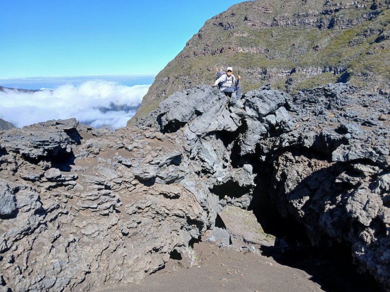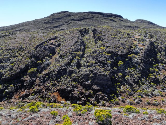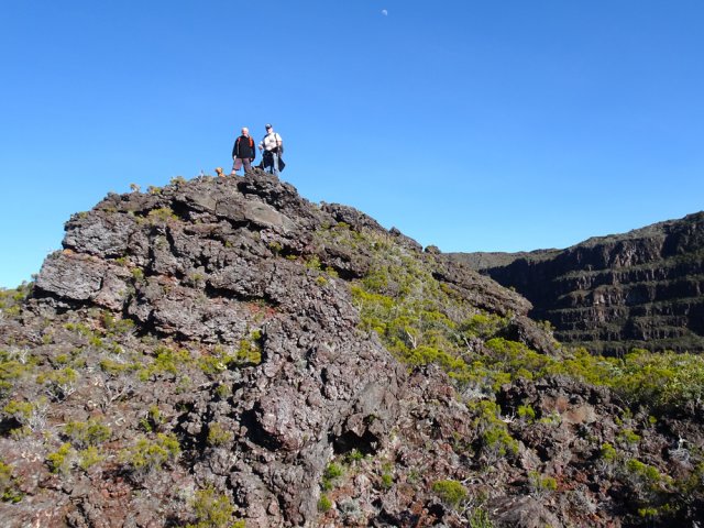 On peut s’interroger par exemple sur la formation de certains reliefs, tel que le Plateau des Basaltes, les « gendarmes » du Piton Chisny ou plus petit encore les dunites chargées d’olivine...ce jour-là nous avons eu la chance d’avoir en Jean-Paul un bon professeur qui nous a fait profiter de ses connaissances.