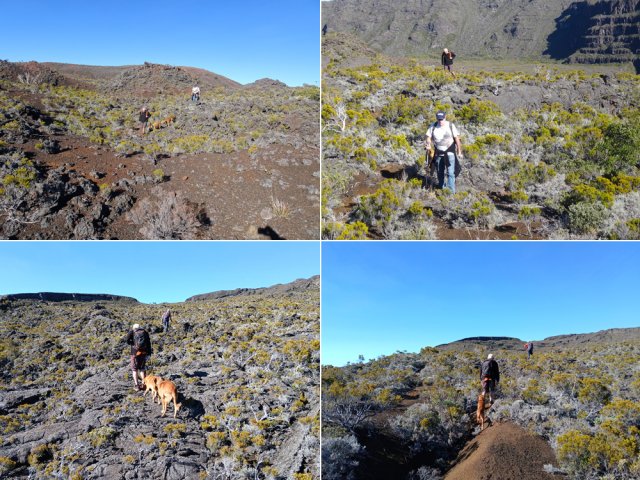 Certes ce n’est pas l’enclos Fouquet et le Dolomieu, mais la présence de diverses roches et sables volcaniques finit par irriter les coussinets de nos amis à 4 pattes, comme j’ai pu le constater un jour au Pas des Sables.