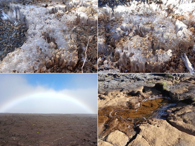 Nous n’avons pas eu le temps de nous ennuyer tant il y avait à voir : les roches et autres cristaux de glace matinale fixaient nos regards au sol et se disputaient notre attention à tous les reliefs, ravines, buttes et paysages alentour qui eux évoquaient les grands espaces et nous appelaient à aller plus loin, plus vite, à la découverte d’autres merveilles…