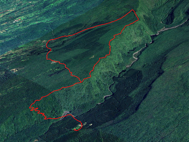 La Forêt Jacques Payet couvre des centaines d'hectares entre les Hauts de la Crête et la Vallée Heureuse. Toute la région a été modelée par les forestiers au siècle précédent. On rencontre un peu partout des bois ou de longues lignes de cryptomerias facilement repérables sur les photos satellite. Des camphriers, qui ont souvent du mal à supporter les grands vents des cyclones, sont également implantés un peu partout. Lors de la boucle qui fait le tour de cette grande forêt, on repère de nombreux sentiers partant de la Route Forestière des Onze Cents. Utilisés à l'époque par les forestiers, ils sont désormais empruntés par les braconniers et deviennent de plus en plus étroits. Hélas, par manque de fréquentation, beaucoup disparaissent aux alentours des 1000 m et c'est le hasard qui peut amener un "explorateur" à rejoindre le sentier Jacques Payet longeant la Vallée Heureuse. C'est le cas pour les deux sentiers faisant le tour de la forêt de camphiers désormais bouchés par les cadavres de camphriers. Le sentier présenté sur cette fiche débute au plus près de la Ravine Souris Chaude qu’il longe jusqu'à s'approcher de la Ravine Jacques Payet. Très facile à repérer, il se suit sans hésitation jusqu'à l'abri de l'ONF qui se transforme lentement en ruine insalubre. Les deux km de montée comportent cependant une centaine de mètres envahis par les fougères et les pailles sabres mais jamais on ne se pose la question sur l'itinéraire. Le départ proposé ici à partir du Gîte de Basse Vallée rallonge un peu cette sortie qui ne peut pas encore être classée en aventure.