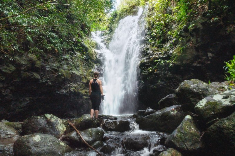 Après près de 3 heures passées à arpenter les alentours de la Cascade Chinois, Laurent nous accompagne sur une courte remontée de la Ravine du Butor pour y découvrir 3 charmantes cascades et leur bassin de baignade.