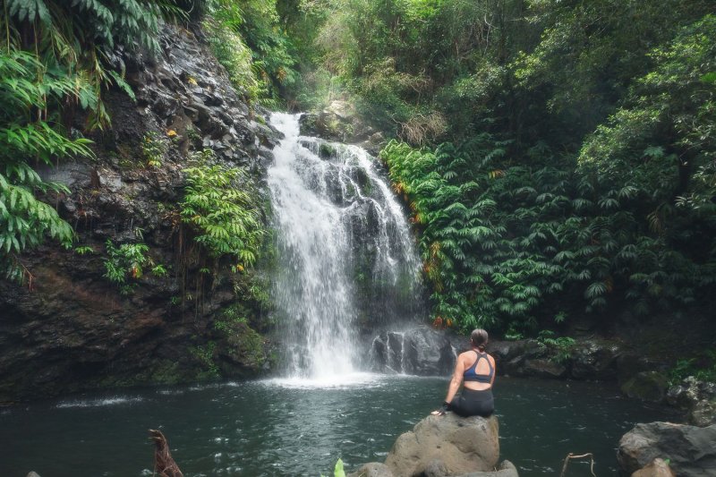 Le sentier est un vrai jeu d’aventure dès le début : mains courantes, petit pont, échelle… trop chou, et déjà le sourire aux lèvres. La première cascade est un whaouuu absolu, aussi belle vue d’en dessous que d’en haut 😆