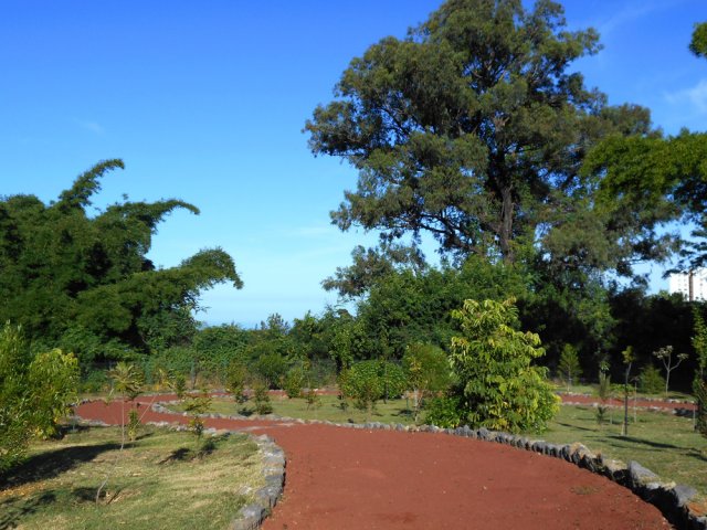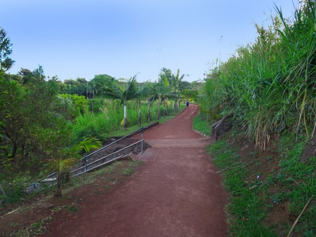 On voit souvent l'importance d'un lieu au parking qui lui est proche. A Bel Air, celui du Parcours de Santé de la Pointe est vaste mais il est souvent complet tant les tamponnais sont friands de ce havre de verdure le long de la Rivière d'Abord. Tôt le matin, les allées en terre battue sont prises d'assaut par les marcheurs ou les coureurs qui, en fonction de la forme ou du chrono, effectuent plusieurs fois le parcours sans avoir à se rendre dans une forêt de la région. Nous verrons à l'usage si le Parc des Palmiers pourra le détrôner. Le Parc Marc Rivière, tout proche, représente une bonne option en semaine pour rajouter du kilométrage en changeant un peu de paysage. Durant le week-end, seule la partie basse est ouverte au public. Un circuit permettait de rallonger encore plus en longeant la Rivière d'Abord mais, hélas, depuis la disparition de l'Association des Petits Tamponnais Ruraux, même les aventuriers ont délaissé les berges de basalte. Les randonneurs ne connaissant pas le Tampon pourront regrouper cette fiche avec le circuit du Parc des Palmiers, ce qui justifiera un long déplacement.