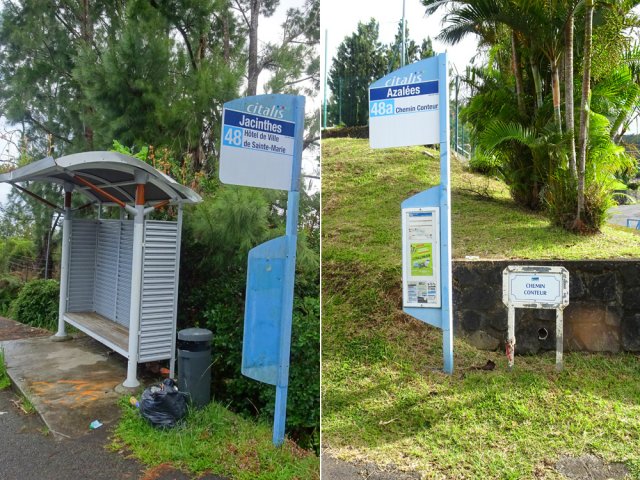 Il est possible aussi de rejoindre le début de la randonnée par le bus 48 jusqu'à l'arrêt Jacinthes. A la fin, prendre la même ligne ou la 48a à l'arrêt Azalées pour revenir vers Sainte-Marie.