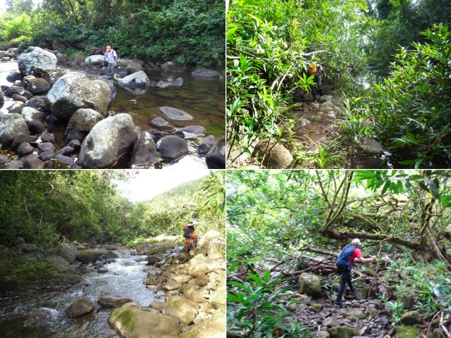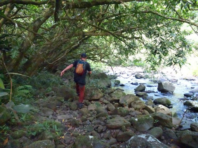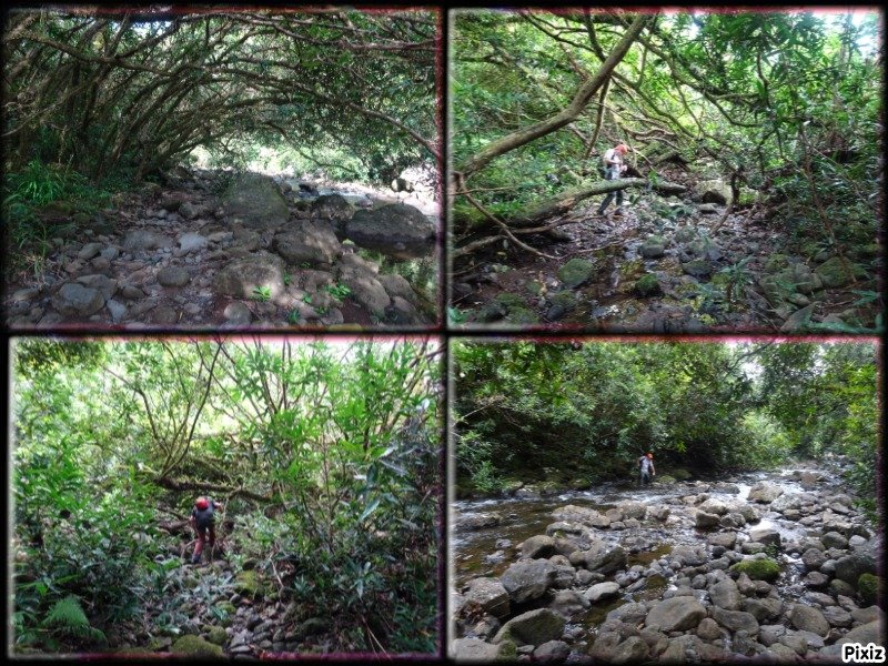 PHOTO 1 : la remontée du Grand Bras se fait aussi sur des sentes longeant le cours d’eau, même si par moments il faut accepter de se mouiller un peu..