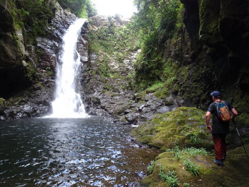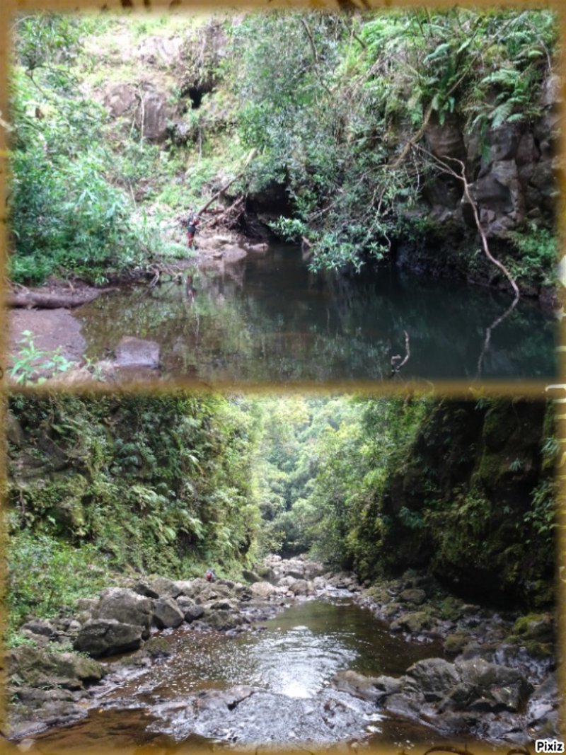 Dimanche 8 mars oremus nous a proposé de découvrir cette nouvelle fiche et guider au GPS de main de maître gazelle et moi avons pu découvrir cette magnifique cascade. Elle se mérite vraiment une fois arrivé à la rivière il faut la remonter non sans mal, tantôt en rive droite et gauche parfois carrément dans l’eau nous avons réussi,c’est très technique et physique, il faut faire très attention, les galets sont glissant. La cascade katinde est magnifique, furieuse. La remontée du rempart s’effectue assez facilement à condition de suivre parfaitement la trace ainsi que plus haut dans la forêt. Il est facile de se perdre. Une fois arrivé sur la piste, c’est tranquille. Nous rencontrons de somptueux ouvrages d’arts historiques qui force le respect de part les difficultés pour les réaliser. Merci ousarshiph 2 et jean Paul pour cette nouvelle découverte. Très belle boucle. Merci également pour ton bonjour.