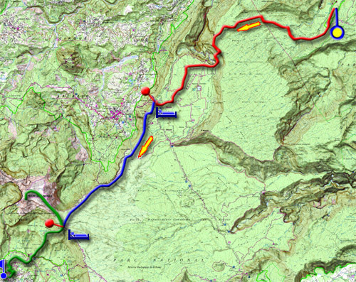 Encore un itinéraire transversal assez court pour bien profiter des paysages. S'il est facile de quitter Cilaos en arrivant le troisième jour, il faut une organisation plus réfléchie pour se rendre au départ. La meilleure solution étant de se faire déposer par quelqu'un ne marchant pas. Le premier jour sera boueux et beaucoup préfèreront effectuer le trajet à l'envers en partant de Cilaos. Le circuit de 38.5 km en quelques chiffres Première étape : 14.5 Km - D+ 800 m - de 6 à 7 heures de marche Deuxième étape : 9 Km - D+ 1000 m - de 4 à 5 heures Troisième étape : 15 Km - D+ 600 m - de 6 à 7 heures Premier jour : Partir de la piste la plus proche du sentier de l'Eden, à quelques centaines de mètres du point de vue sur la Cascade du Chien. Si une personne sert de chauffeur, partir de ce point de vue symbolique même si on voit assez peu la haute chute. Après quelques virages de la piste, prendre à droite le sentier de Bélouve en face d'une aire de pique-nique. Le chemin est tout d'abord très large et agréable mais cela ne dure pas. Il se rétrécit et devient encombré de goyaviers, de fougères et de sabres qui sont assez désagréables par temps de pluie. La boue devient très vite le compagnon de voyage. Les mousses recouvrent presque toute la végétation. Quelques gués aident souvent à laver les chaussures très vite crottées. Les pentes sont faibles à l'exception du franchissement de quelques ravines. Le sentier passe plus haut près du barrage de récupération des eaux du Bras Piton. Plus haut, les goyaviers diminuent et les fanjans sont de plus en plus nombreux. Le sentier fait un angle droit vers l'ouest et la montée diminue à peine dans la forêt inextricable. On profite de beaux points de vue sur le Pic et le Morne du Bras des Lianes. Il reste encore 400 m de montée à partir de l'angle et les racines de branles viennent souvent remplacer la boue. On longe le Grand Bras Piton en rive gauche mais on ne peut le voir. Plus haut, le sentier le traverse à 300m de sa source et on le remarque à peine. On parvient enfin au bord du rempart pour de grandioses points de vue sur le Trou de Fer et ses très hautes cascades. La fin de la montée, d'une centaine de mètres, s'effectue dans la mousse, les sphaignes et les racines. Le sol est plus qu'ailleurs recouvert de cette mousse qui cache les racines des gros branles verts. Le sentier est parfois très étroit et les pieds peuvent se glisser douloureusement entre les racines. La descente qui se présente ne fait que 150 m mais il faut s'y préparer car la pente est quasi verticale. Les mains sont indispensables et plusieurs échelles facilitent grandement la désescalade. Au pied du rempart, partir sur la gauche et marcher le plus souvent dans le fond d'une ravine moussue. On parvient plus loin au très long gué rocheux de la Ravine Mazerin avant de remonter vers quelques cryptomerias. Le sentier est de plus en plus souvent recouvert de planches ou de planchers pour éviter la boue de cette région très humide. Emprunter la piste cavalière et marcher jusqu'à la Reine des Tamarins puis bifurquer sur le sentier de droite qui se termine au gîte après le franchissement de deux ravines sur des escaliers ou planchers. Le lendemain, ne pas partir sans profiter du point de vue sur Salazie depuis le large belvédère. Traverser ensuite les installations du gîte et partir sur la piste qui longe le circuit pour handicapés. Elle est presque plate et agréablement bordée par la forêt. Elle se finit à un autre belvédère et un pylône. Le sentier traversant la forêt primaire débute ici, boueux dès le départ. La forêt, en revanche est très belle. On longe des fougères, sabres, de gros troncs de tamarins souvent tortueux dans les branches desquels les rayons du soleil matinal créent de magnifiques couleurs. Les marches sont très hautes et les premières courtes descentes débutent pour franchir les multiples ravines du parcours. Plus haut, la boue est toujours là mais on rencontre de plus en plus de planchers permettant d'éviter de remplir les chaussures de vase. Quelques échelles ou passerelles facilitent des passages délicats. En s'approchant du rempart, on peut bénéficier de magnifiques panoramas sur Terre Plate, le Gros Morne et le Piton d'Anchain. On rencontre des clairières et la végétation est remplacée par les brandes d'altitude. Ne pas emprunter le sentier partant à droite au Cap Anglais mais poursuivre en frôlant de quelques mètres la Caverne Mussard. Les cailloux remplacent tout ce qui a été foulé du pied depuis le gîte. Il faut chercher où mettre le pied sans se tordre une cheville. La végétation étant assez basse, le regard porte dans toutes les directions pour de magnifiques paysages. On aperçoit bientôt le gîte au loin qu'on rejoint sans trop d'effort après le passage de quelques ravines. Le troisième jour, se lever très tôt pour suivre tous les clients du gîte qui se dirigent en pleine nuit pour assister au lever de soleil. La pente est forte, le sol très irrégulier. Heureusement que des taches de peinture blanche sont régulièrement apposées sur les pierres car, en pleine nuit, on a vite fait de quitter la trace parfois discrète. Plus haut, le sol est glissant en raison des lapilli qui recouvrent tout à travers des sculptures de basalte. Suivre le mouvement des lampes frontales jusqu'au sommet. Quand l'astre a éclairé l'île de ses premiers rayons, prendre le chemin inverse et retrouver le gîte pour un petit déjeuner. Une fois rassasié, entamer la jonction avec le rempart et débuter la longue plongée vers Cilaos. Profiter d'abord du point de vue sur Cilaos pour évaluer ce qu'il reste à descendre. Pendant deux heures, on empruntera des dizaines de lacets avec des marches hautes en bois ou plus rarement en planche sur des pentes très fortes. Le Plateau du Petit Matarum représente dans cette descente technique le seul moment où l'on peut s