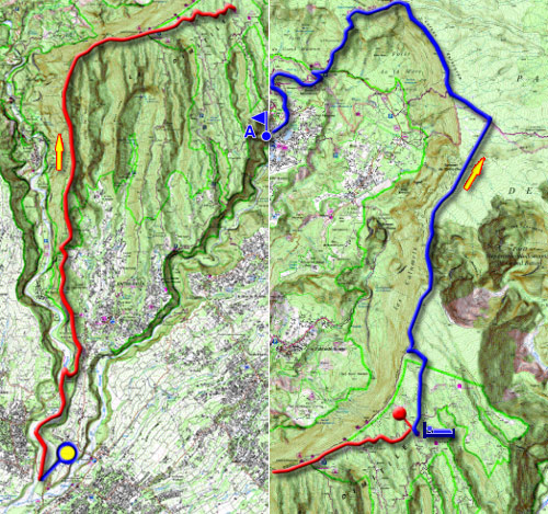 Cette longue remontée vers le Dimitile débute symboliquement au gué du Ouaki mais il est parfois plus facile de stationner sur le bord de la RN5 ou mieux de venir au plus près du départ en bus et d'attaquer directement par l'Îlet Rolland. En cas d'entraînement moyen remonter directement au Grand Fond Extérieur, départ officiel du Sentier Bayonne. Dans tous les cas, cette montée effectuée le premier jour s'adresse obligatoirement à de bons marcheurs mais sinon, sera réalisable en prenant bien son temps. . Le circuit de 39 km en quelques chiffres Première étape : 19 Km - D+ 1800 m - de 7 à 8 heures de marche Deuxième étape : 20 Km - D+ 50 m - de 6 à 7 heures Premier jour : La remontée du Grand Bras de Cilaos est caillouteuse et ne plait pas à tout le monde voilà pourquoi un départ à l'Îlet Rolland évitera ces galets qui roulent sous la semelle. L'échauffement débute par la montée au Coteau Sec par quelques lacets sous les bambous. Une fois au château d'eau qui domine la ville, partir tout droit par la petite route puis bifurquer à gauche pour remonter le chemin du Coteau Sec en profitant de beaux points de vue sur la ville et le massif du Dimitile. Ne pas manquer le sentier du Coteau Sec en partant à gauche au château d'eau. Il descend sans grandes difficultés vers Grand Fond Extérieur qu'on rejoint sous des manguiers. Le véritable sentier Bayonne débute à la fin de la route qu'on rencontre. Il grimpera sans discontinuer pour 1600 m de montée parfois difficile, voire vertigineuse quand on marchera sur l'arête rocheuse. Le plus difficile de ce sentier est son aspect interminable à cause des innombrables dents de scie que l'on est obligé de monter et descendre. On croit que c'est chaque fois la dernière dent jusqu'à ce que commence la nouvelle. La délivrance se situe au premier belvédère donnant des paysages grandioses sur Cilaos. Plus loin, le belvédère officiel et sa table d'orientation sonnent la fin de cette interminable montée. Plusieurs gîtes sont dispersés sur les flancs peu pentus du Dimitile. Rejoindre donc ce gîte pour se reposer pour la deuxième étape, plus longue mais moins difficile. Le lendemain, rejoindre le bord du rempart en fonction du lieu de repos. Quand on peut voir le Cirque de Cilaos, partir sur la droite et longer le rempart par le magnifique sentier Jacky Inard. La pente est faible dans les milliers de branles verts. On parvient, un peu plus loin, à une arête étroite entre le rempart de Cilaos et la vallée des Roches Noires sur la droite. Les paysages sont grandioses et le sentier très original. La première échelle apparaît avec ses deux rambardes. On semble plonger dans le cirque et les jambes de certains peuvent flageoler. S'ensuivront de nombreuses autres échelles dont certaines se succédant pour franchir les hautes barres rocheuses. Ces échelles seront réparties régulièrement jusqu'au Sommet de l'Entre Deux, fin des montées. Profiter du paysage du haut de ce sommet discret. On aperçoit au bas les petites mares laissées par les pluies dans les marécages. Le sentier qui les rejoint est très étroit et caillouteux, imposant de prendre son temps pour regarder où poser les pieds. En bas, marcher jusqu'aux mares aperçues depuis le sommet et prendre à gauche le sentier du Piton des Neiges. Repérer pour une prochaine fois le sentier redescendant à Bras Sec puis poursuivre sur un lit de cailloux parfois instables en direction du gîte de la Caverne Dufour. Profiter tout en marchant des nombreux points de vue sur Cilaos en quittant pour quelques instants le sentier officiel. Quand le sentier commence à descendre, on aperçoit le gîte et on imagine la pente qu'il faut encore monter pour atteindre le point culminant de La Réunion. Comme le gîte n'est pas toujours ouvert pour s'y désaltérer, prendre à gauche la longue descente vers le Bloc. Cette descente s'effectue en deux temps séparés par un plateau ou le plat sera de courte durée. Ce sont des dizaines de lacets en pierre, en terre ou en planches qu'il faut passer pour arriver enfin, longtemps après, au Bloc où il est possible de prendre le bus. Sinon, poursuivre vers Cilaos. Trois itinéraires sont possibles : la route elle-même mais il peut y avoir de la circulation ; la petite route de la Roche Merveilleuse ou le sentier qui débute en forte montée au commencement de la route de la roche. Le sentier est la solution la plus adaptée à un randonneur. Après une ascension sur pierres de toutes tailles, le sentier longe le parcours botanique pour de belles portions moussues. Trouver facilement le sentier qui part vers l'ouest et zigzague dans la forêt du Plateau des Chênes puis file plein sud vers la ville qu'on rejoint sous les cryptomerias. L'église est alors à moins de 300 m.